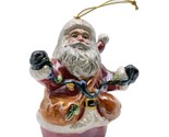 - Iridescent Glazed Ceramic Santa Claus & String Of Christmas Lights Ornament VTG