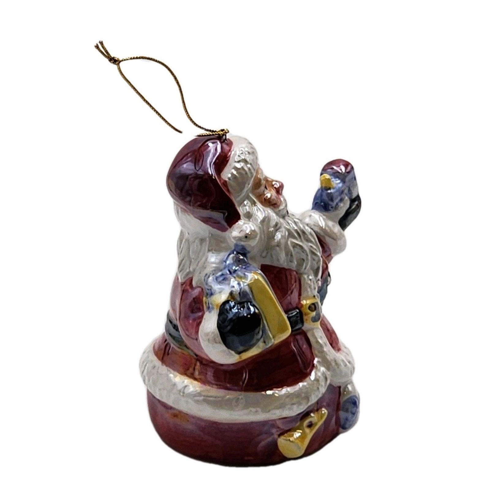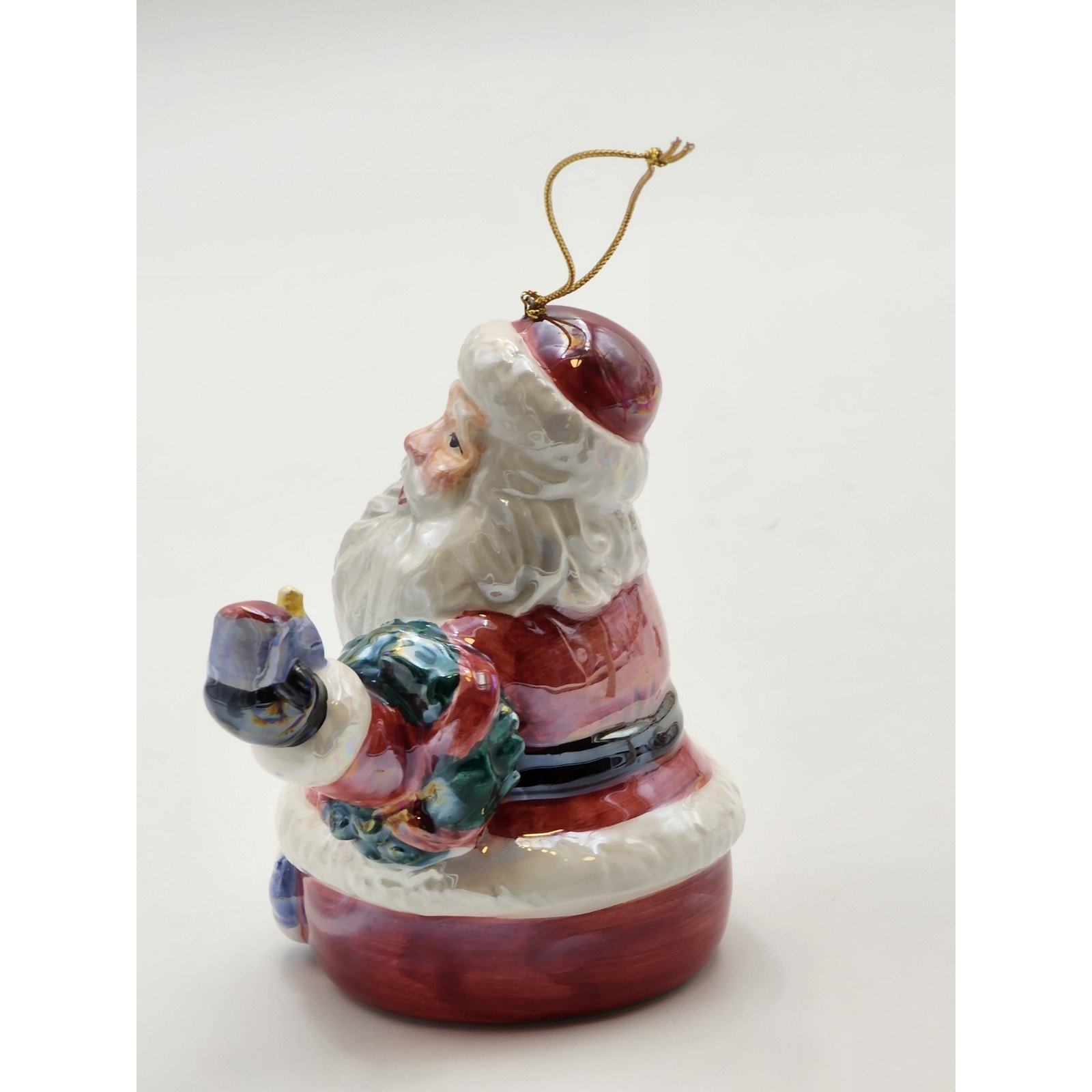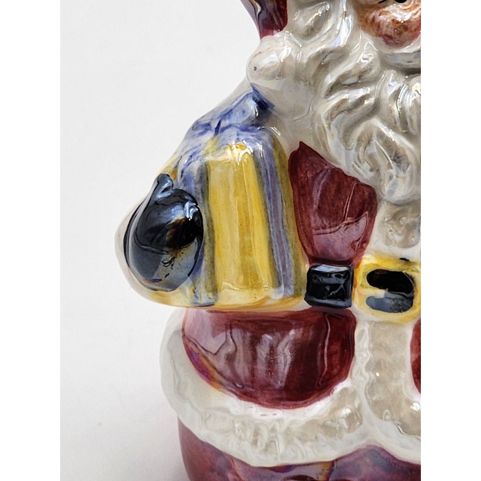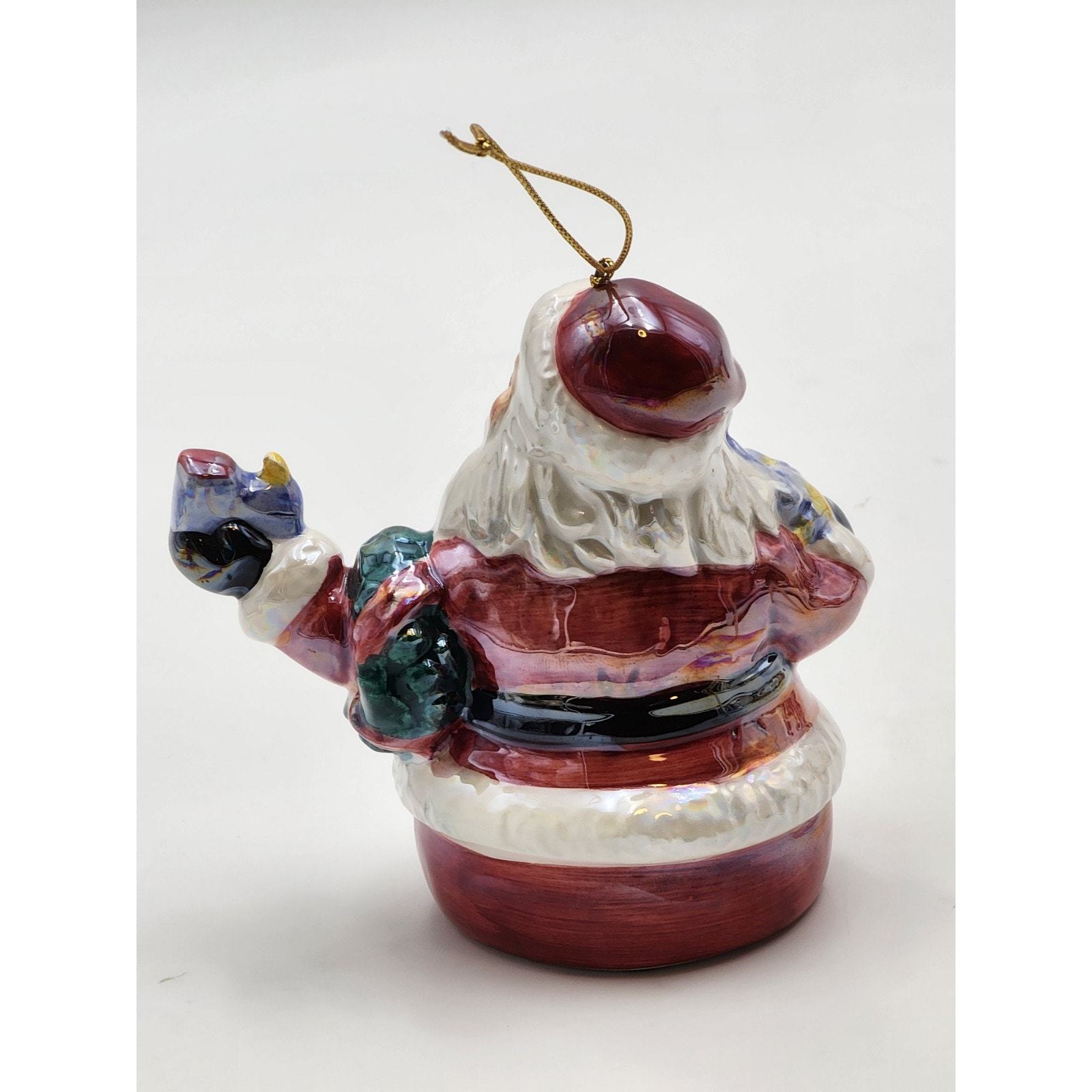 - Iridescent Glazed Ceramic Santa Claus with Train & Christmas Gift Ornament VTG