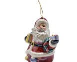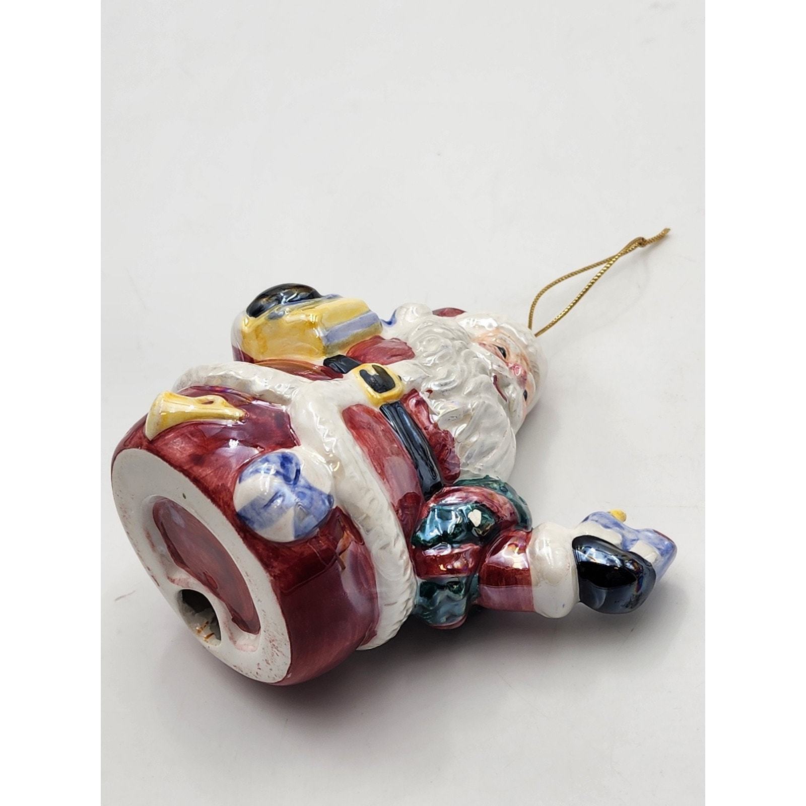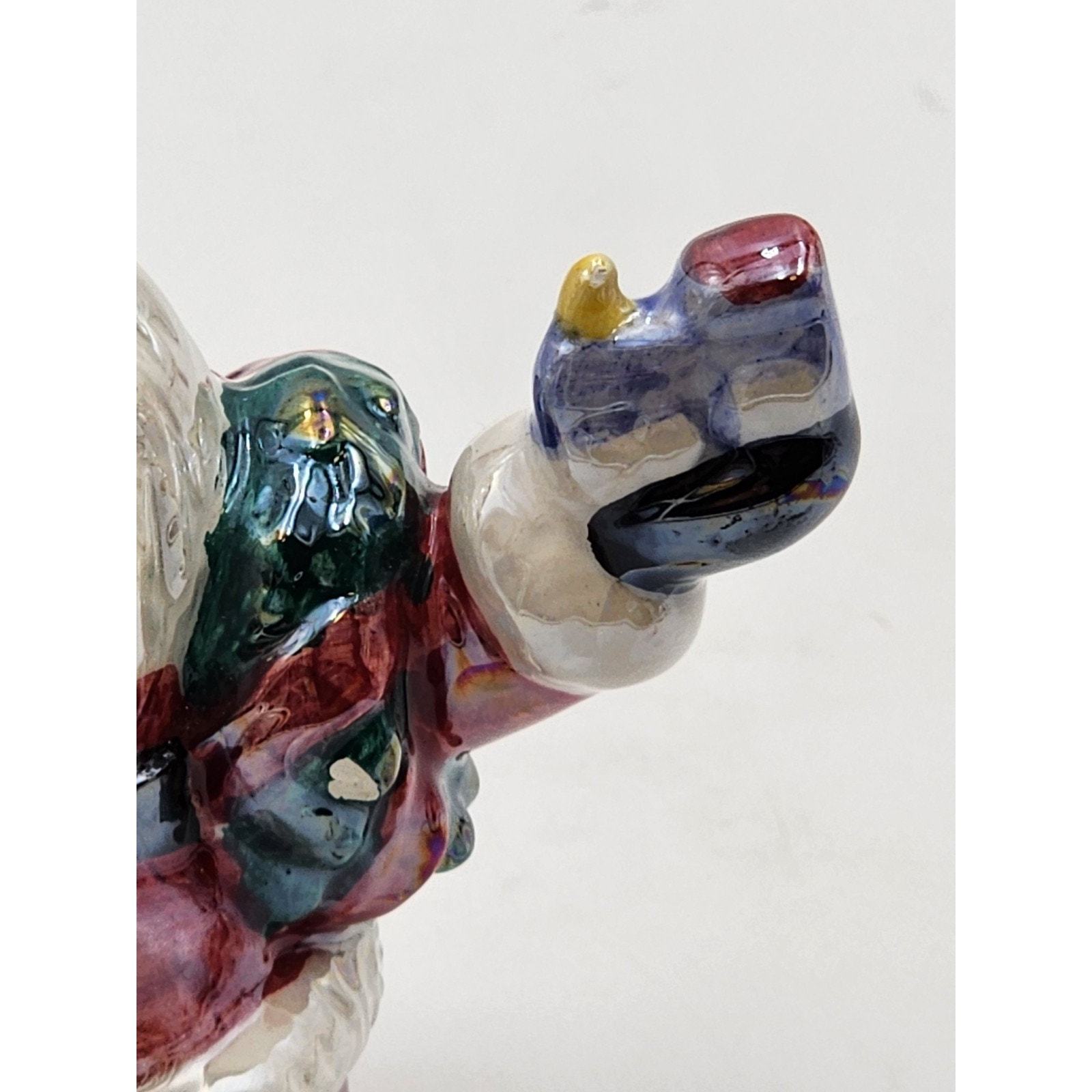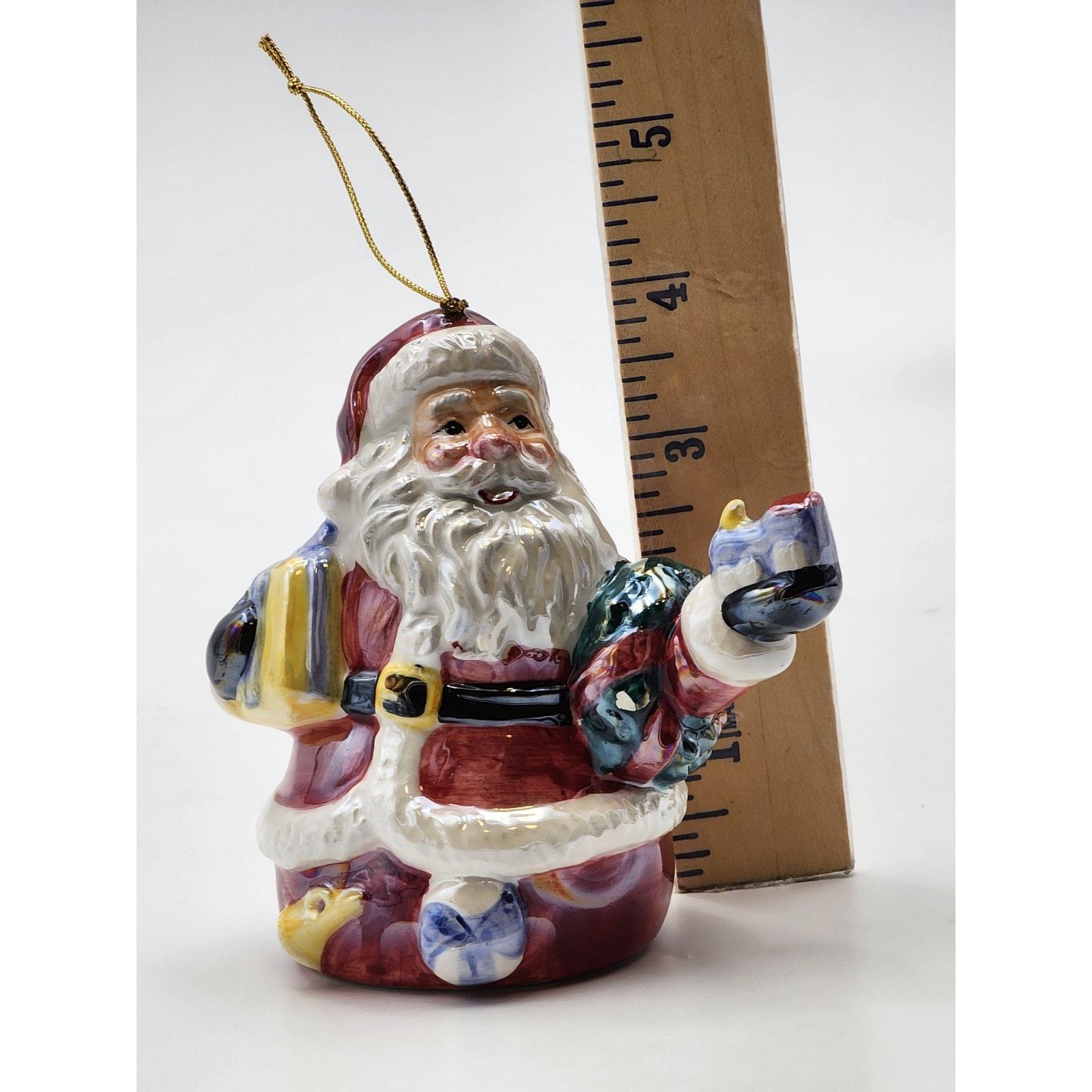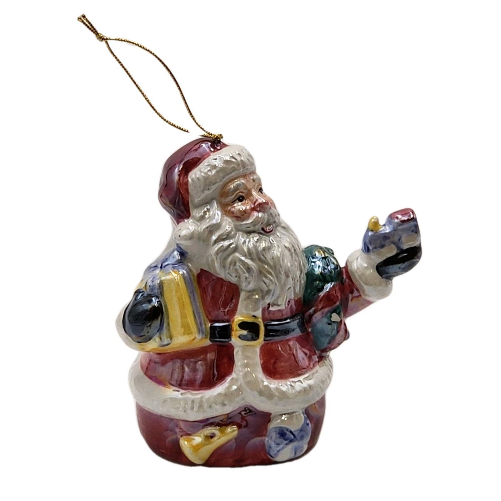 - Iridescent Glazed Ceramic Santa Claus with Train & Christmas Gift Ornament VTG