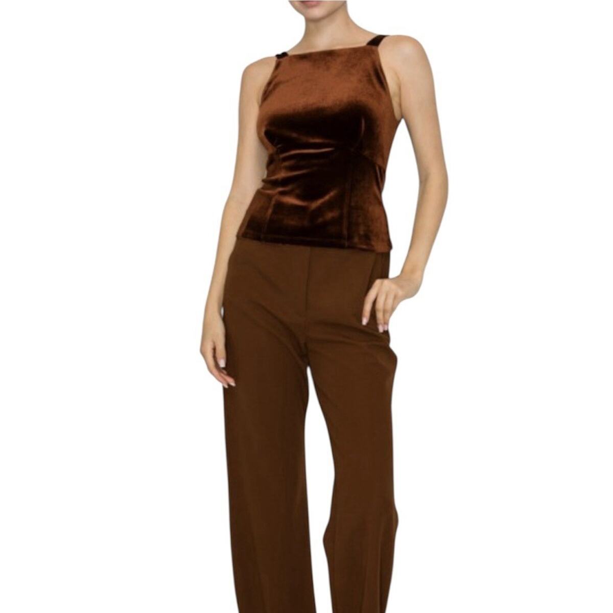 - Iris Velvet Ribbon Tie Top Size M Chocolate Brown Sleeveless Thanksgiving NWT