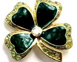 - Irish Shamrock Pin Four Leaf Clover Brooch Green Enamel Rhinestone Lucky Jewelry