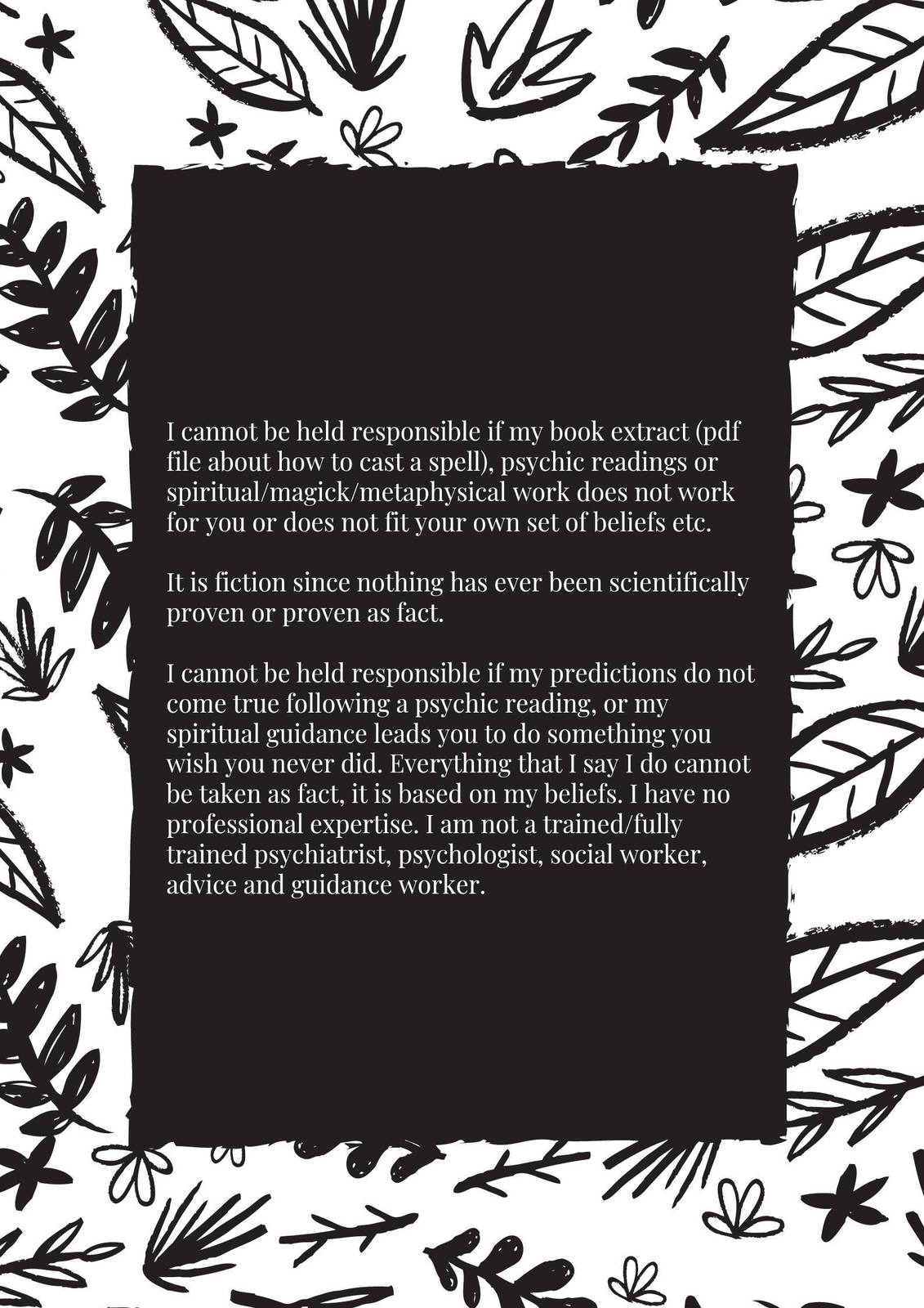 You must be at least 18 to purchase. Readings are for entertainment purposes only and should not substitute medical advice. I do not guarantee outcomes, and the insights provided are based on personal beliefs.