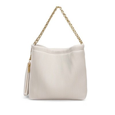 - Isabella Recycled Vegan Leather Chain Shoulder Bag Coconut Cream Pleated