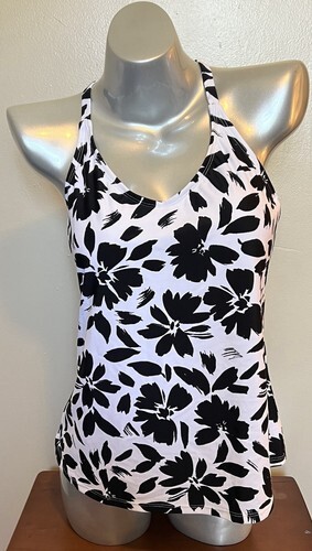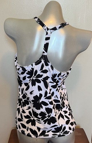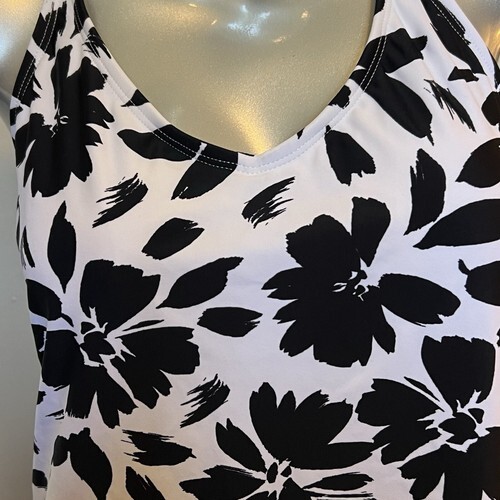 - Island Escape Tankini Swimsuit Top Size 16 White Black Floral Underwire NEW