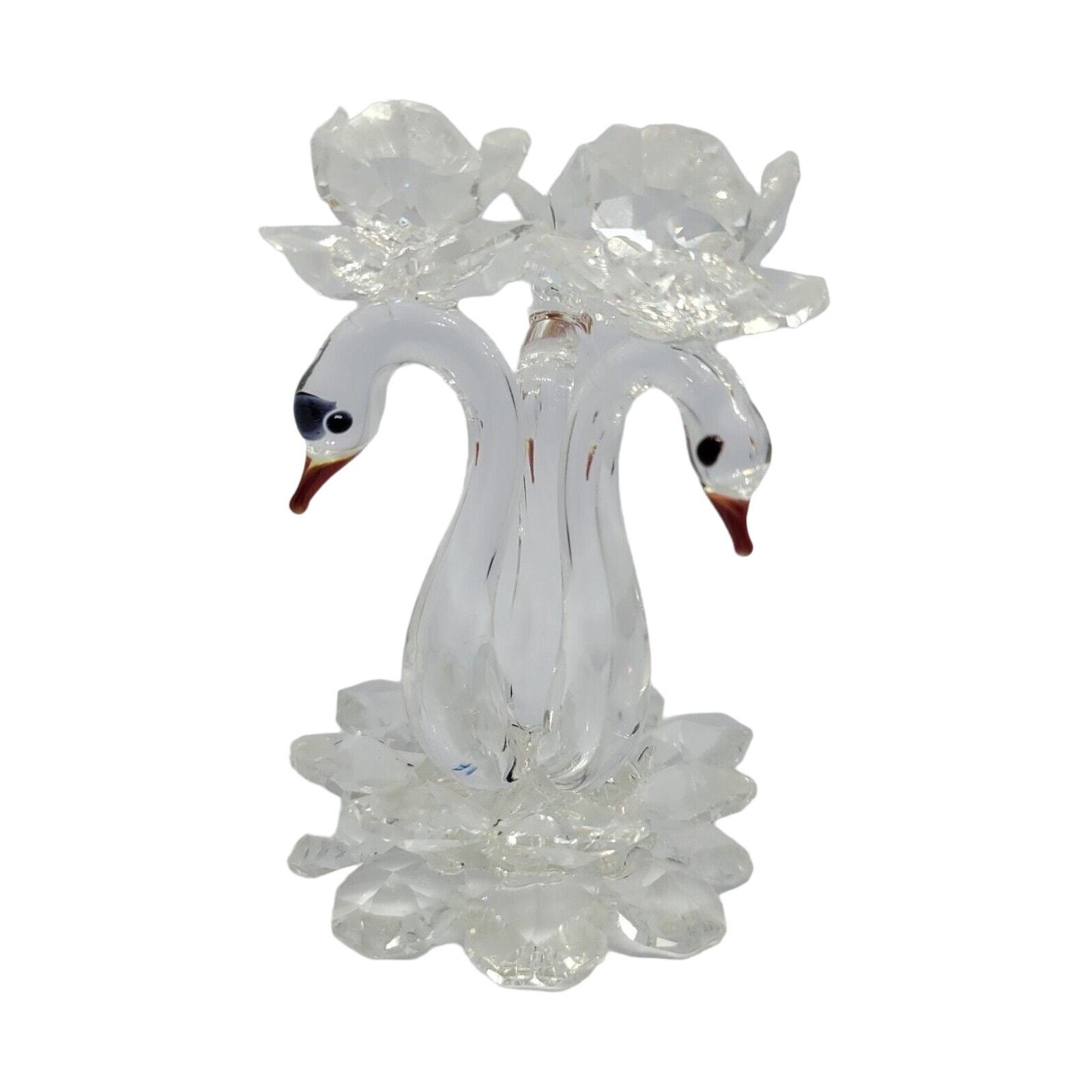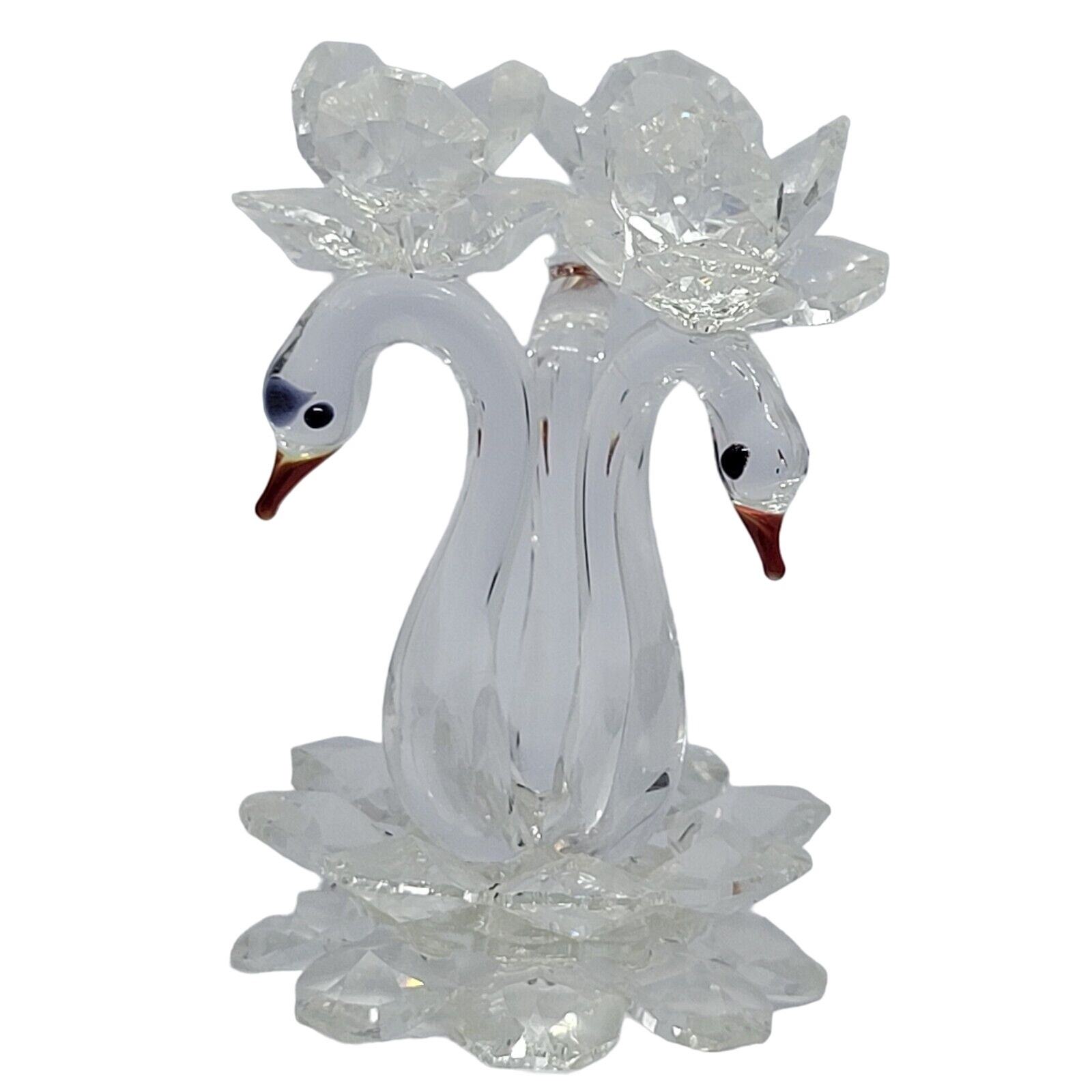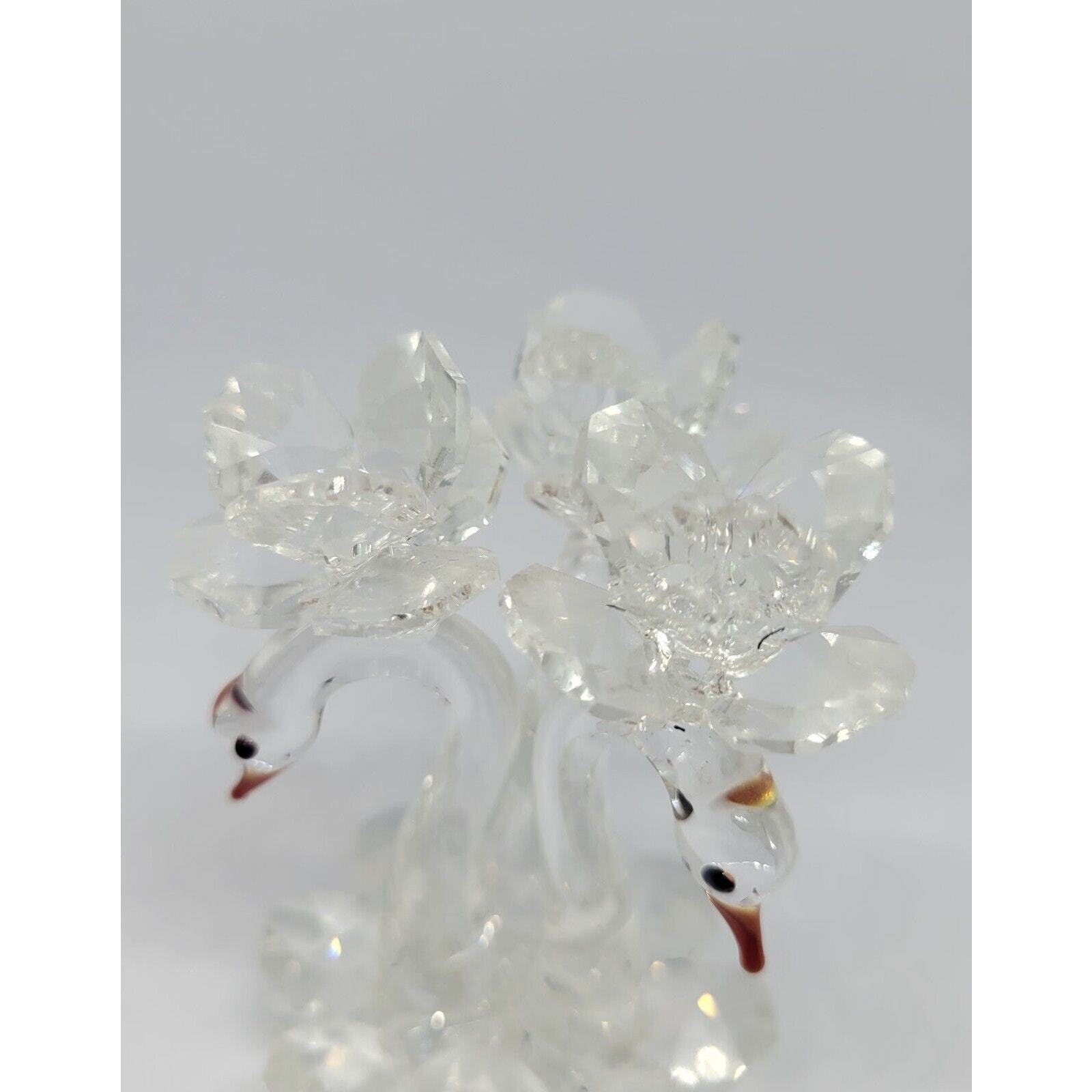 - Italian Crystal Figurine Authentic 3" Handcrafted Triple Swan With Roses