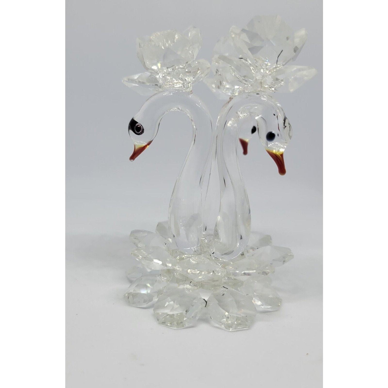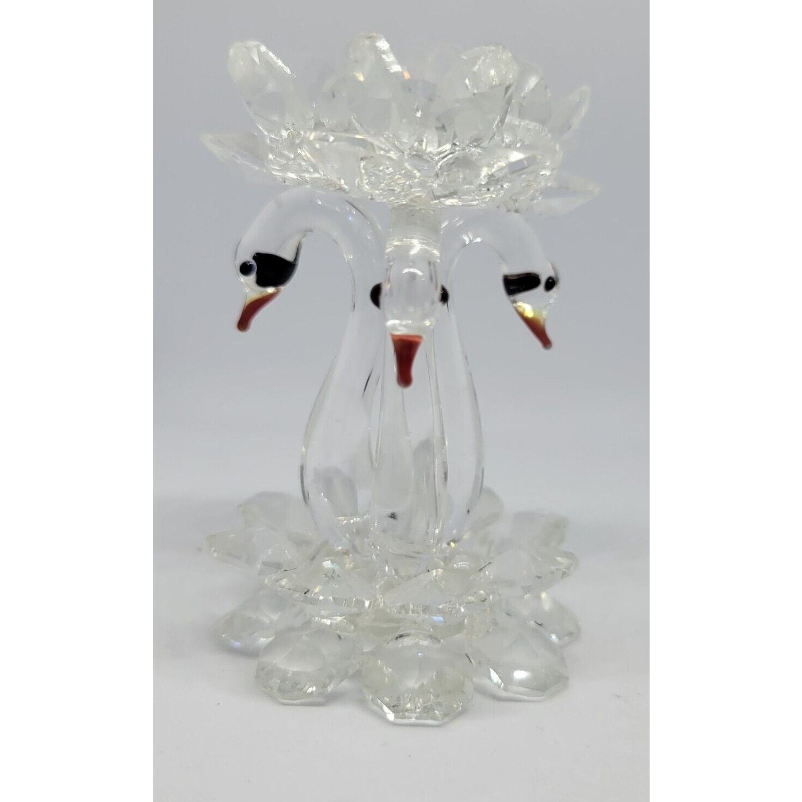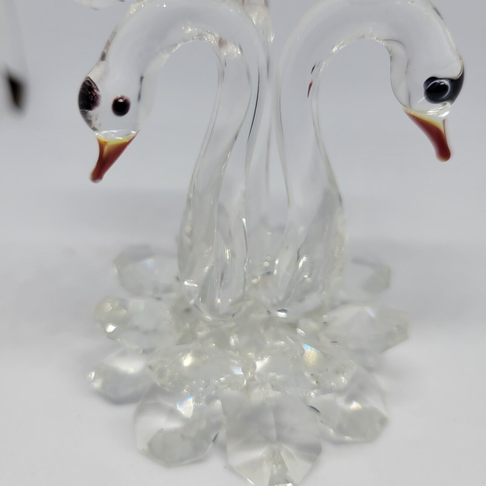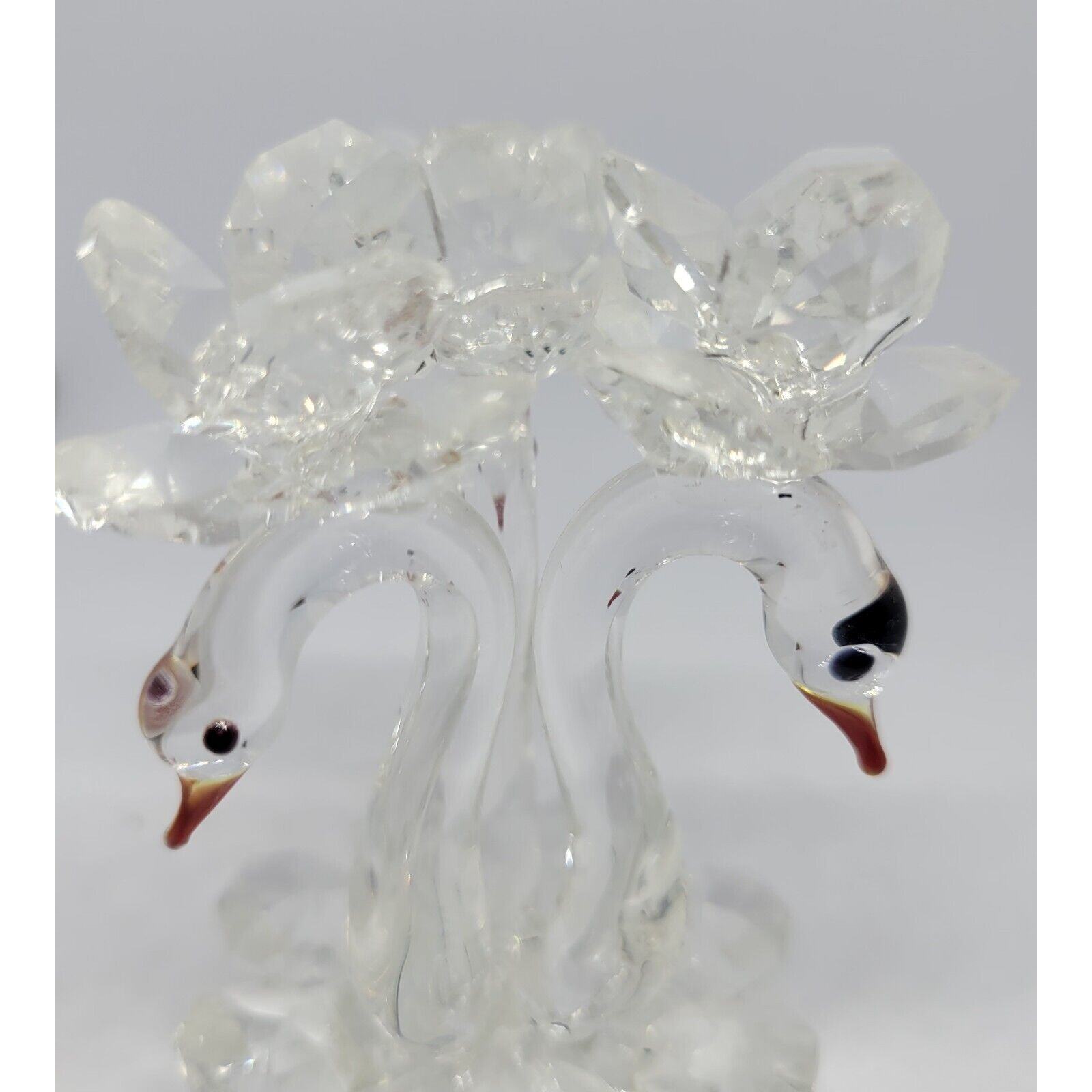 - Italian Crystal Figurine Authentic 3" Handcrafted Triple Swan With Roses