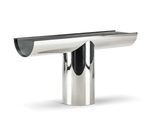 Product description: Elevate your living space with this striking Italian minimalist console table that masterfully combines form and function. The sleek T-shaped silhouette features a dramatic black ash veneer top supported by a mirror-polished cylindrical stainless steel base, creating an architectural statement piece. Measuring 47.2 inches long, 13.7 inches wide, and 33.4 inches high, this versatile table fits perfectly in entryways, hallways, or as a sophisticated accent in living rooms. The premium black ash tabletop showcases natural wood grain patterns while providing ample surface area for displaying art pieces, vases, or cherished collections. The robust stainless steel frame ensures exceptional stability and durability while maintaining clean, minimalist lines that complement contemporary interiors. Its thoughtful proportions and understated elegance make it an ideal choice for both residential spaces and upscale commercial environments. The smooth surfaces are designed for easy maintenance, perfect for high-traffic areas where style meets practicality.