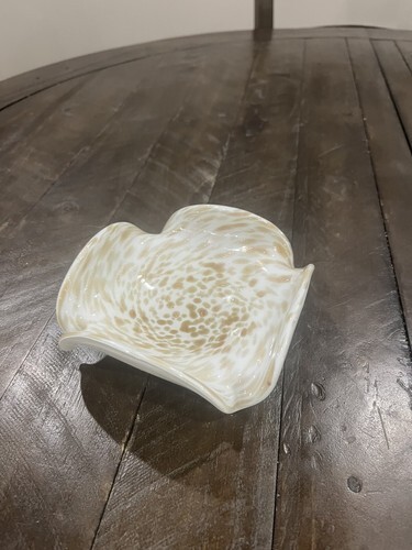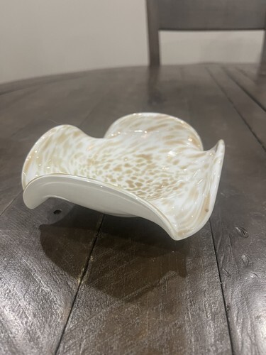 - Italian Murano Art Glass Candy Dish Ash Tray Scalloped Edges Gold Flecks 5.5”