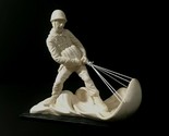 Paratrooper is mounted on a marble base, Approx 8" tall, 8" long, 5" wide. Signed either FO or CO on back of the statue.