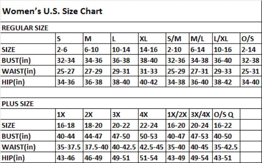 XL. Weight: 170lb - 200lb. Bust: 40in. - 48in. Waist: 32in. - 40in. Hip: 42in. - 50in. Cup: C/D. Dress: 14-20.