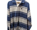 Izod Blue Gray Cotton Striped Long Sleeve Regular Fit Rugby Polo Shirt Large L