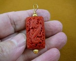 J-1) RED CINNABAR Pendant necklace carved wood lacquer flower bead loop jewelry