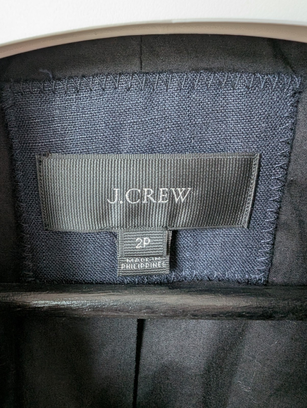 - J. CREW Navy Blue 2 Petite Regent Blazer 100% Linen Single Button Women 2P Prep