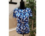 J.CREW Women's Blue & Black Floral Lined Crew Neck Short Sleeve Top Blouse Small