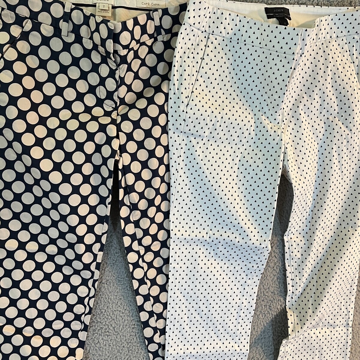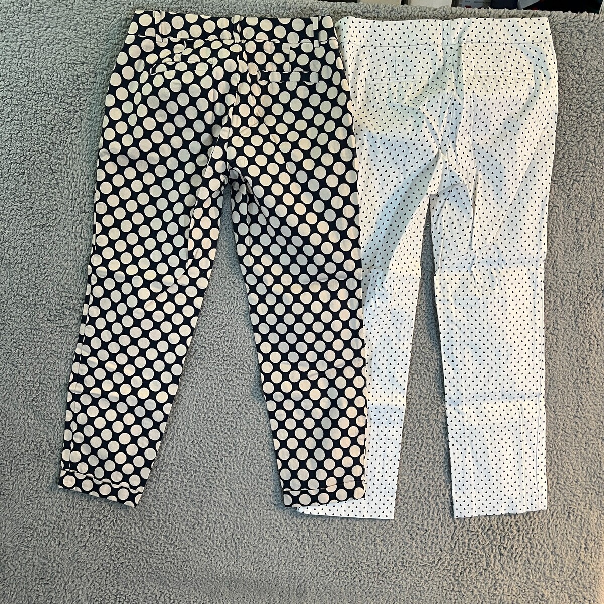 - J. Crew Campbell Dress Pants Lot White Navy Print Size 2 Polka Dots Career Crop