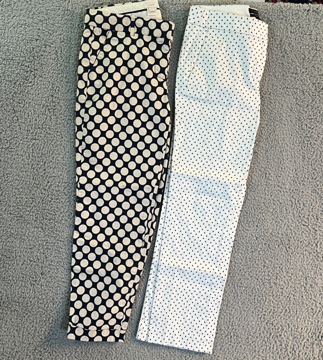 J. Crew Campbell Dress Pants Lot White Navy Print Size 2 Polka Dots Career Crop