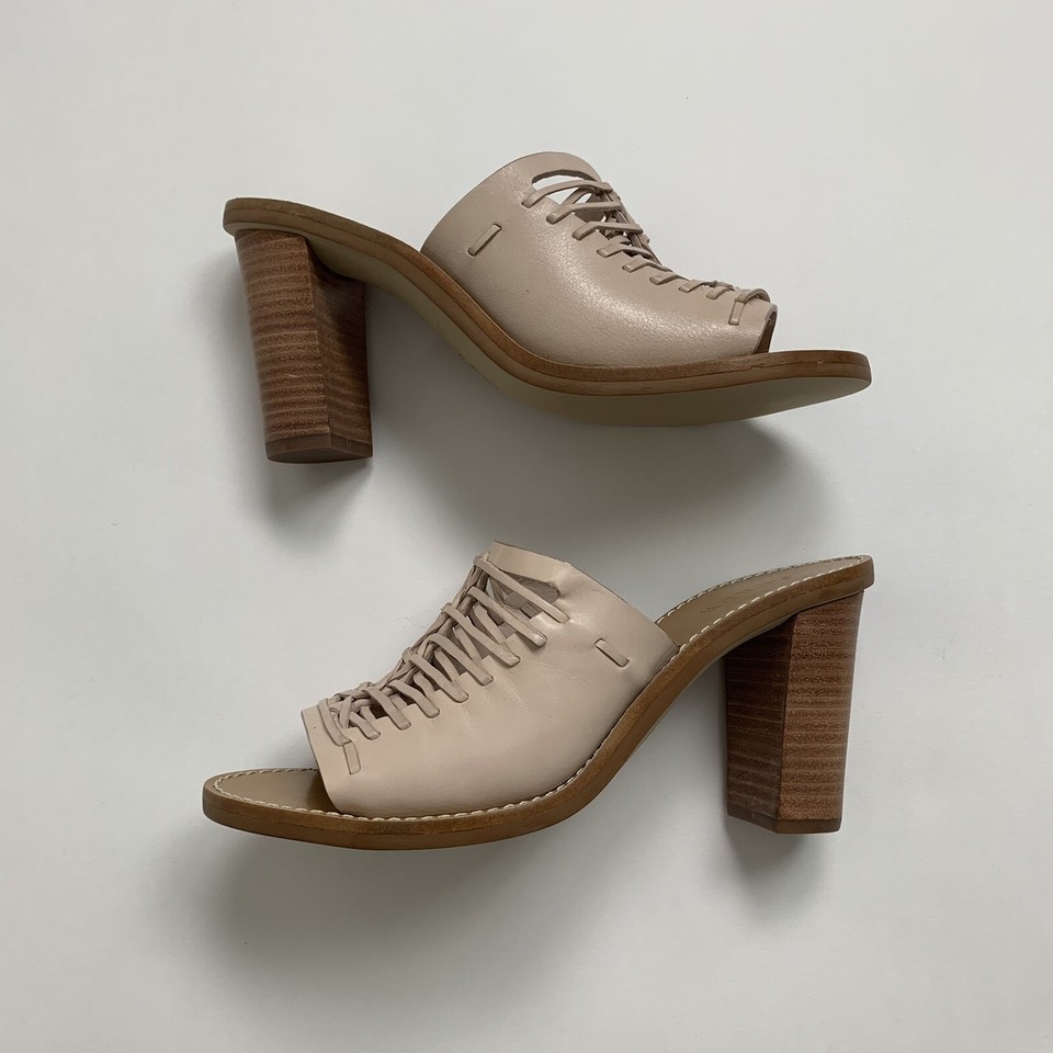 J. CREW MARLOW HUARACHE MULES Leather Light Blush 3.5" Heel Sz 7.5