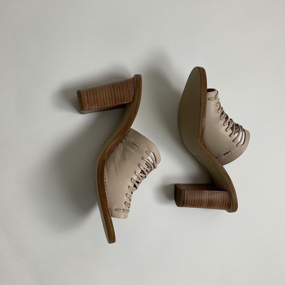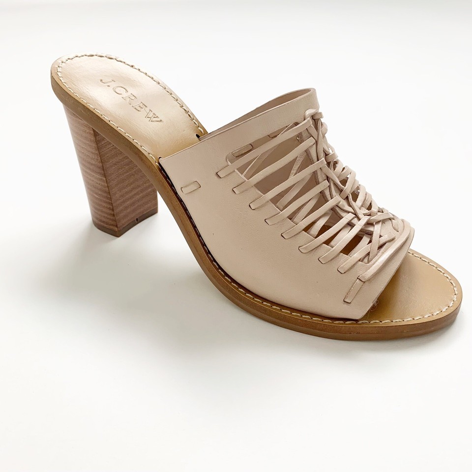 - J. CREW MARLOW HUARACHE MULES Leather Light Blush 3.5" Heel Sz 7.5 New with box