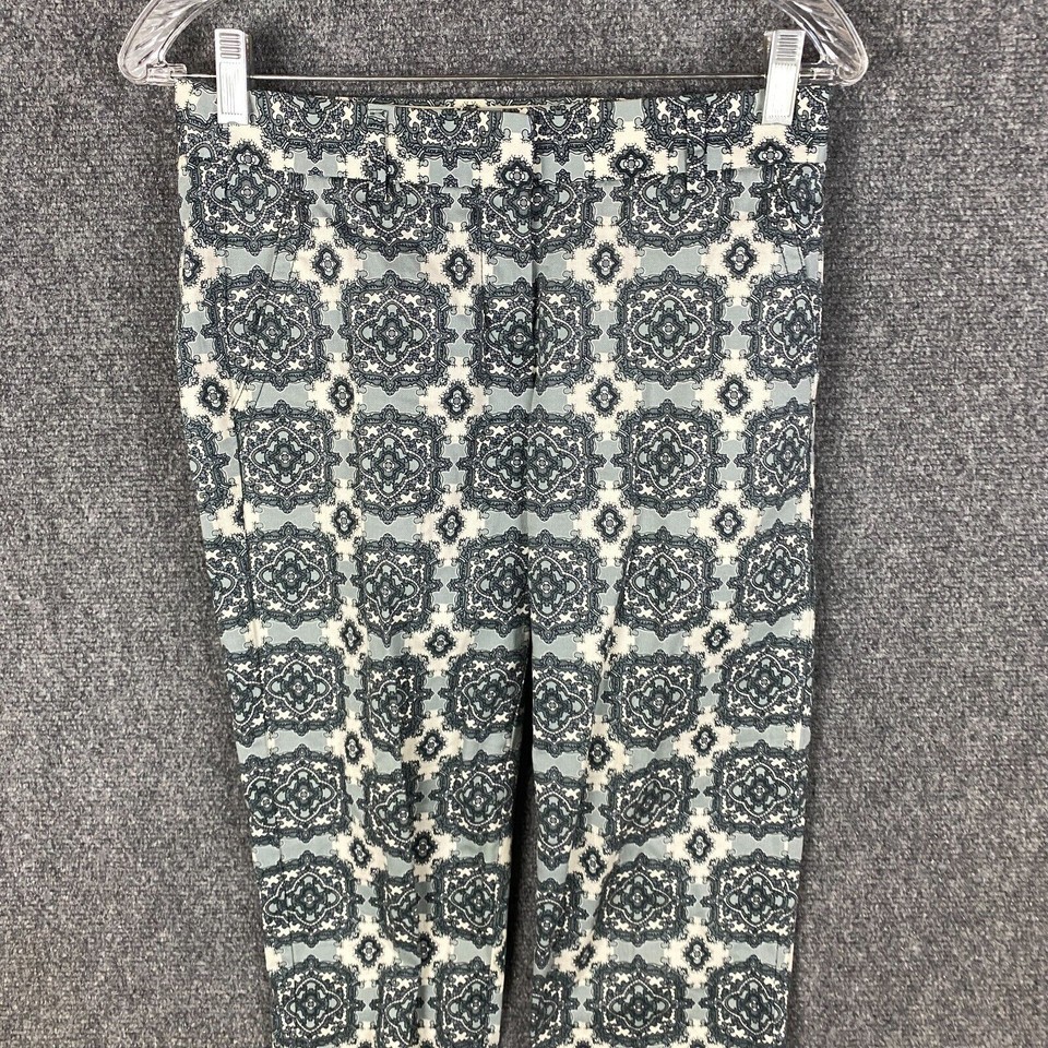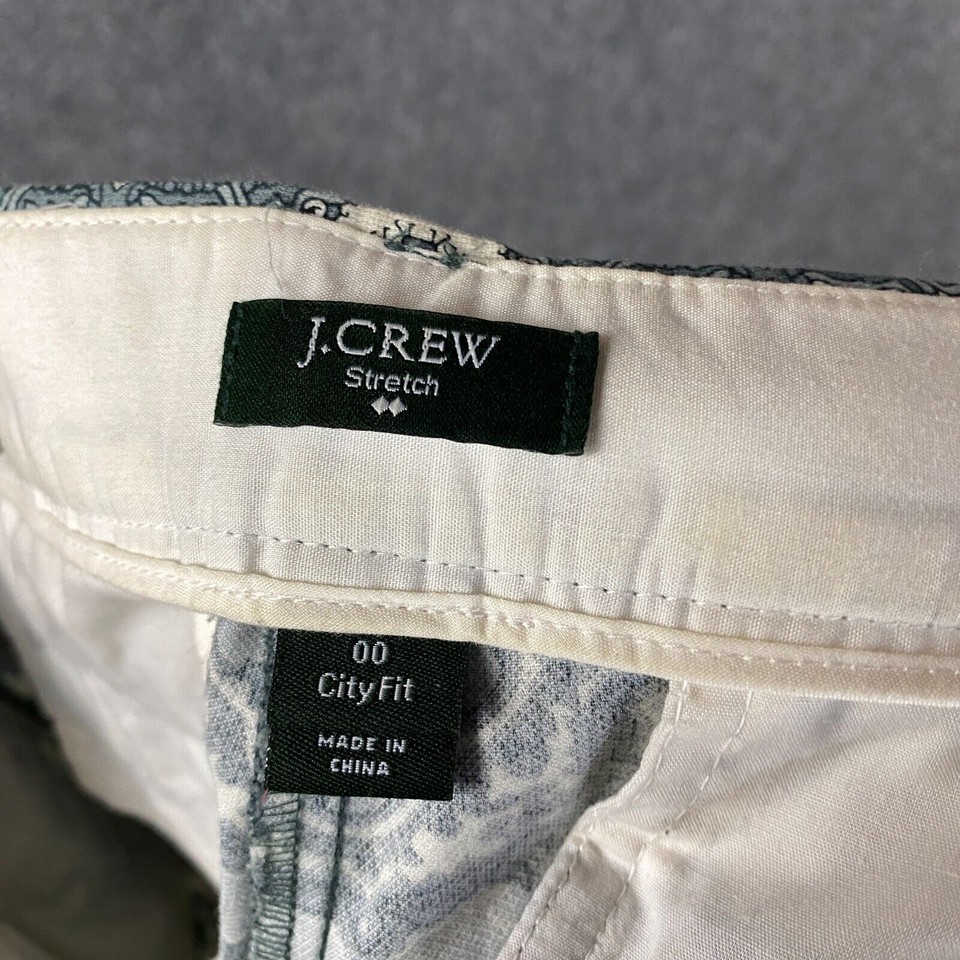 J Crew Pants Women's Size 00 City Fit Paisley Stretch Cotton Hook & Eye