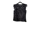 Embrace your wild side with the J.Crew Black Velvet Burnout Top, a perfect blend of edgy and elegant. This high-neck blouse, features a sophisticated ruffle accent and a sheer leopard print that adds a touch of the exotic to your wardrobe. The sleeveless design makes it an ideal choice for layering or for those warm, summer nights. Crafted with attention to detail, this blouse boasts a smooth button closure and is made to fit comfortably with a regular size type. Whether you're dressing up for a night out or adding some flair to your day-to-day look, this top is a versatile addition to any fashion-forward collection.