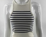 - J Crew Womens High Neck Tank Top Sz Medium Cream Navy Blue Sleeveless Ribbed NEW