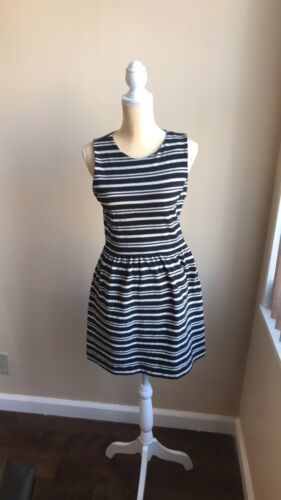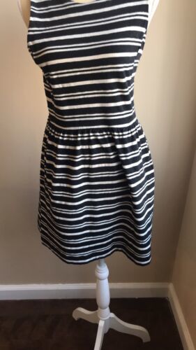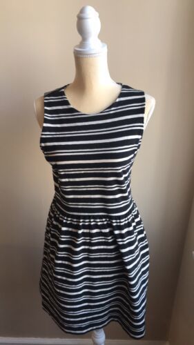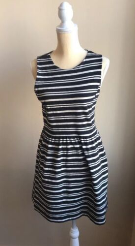 J Crew Womens Sleeveless Striped Dress Black Cream Cotton Blend Sz M. Condition is Pre-owned. Shipped with USPS First Class Package. Cute dress in gently used condition. Fabric is 71% cotton 29% polyester