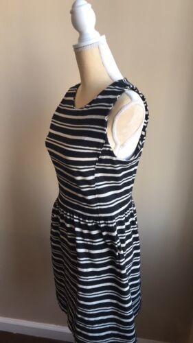 J Crew Womens Sleeveless Striped Dress Black Cream Cotton Blend Sz M