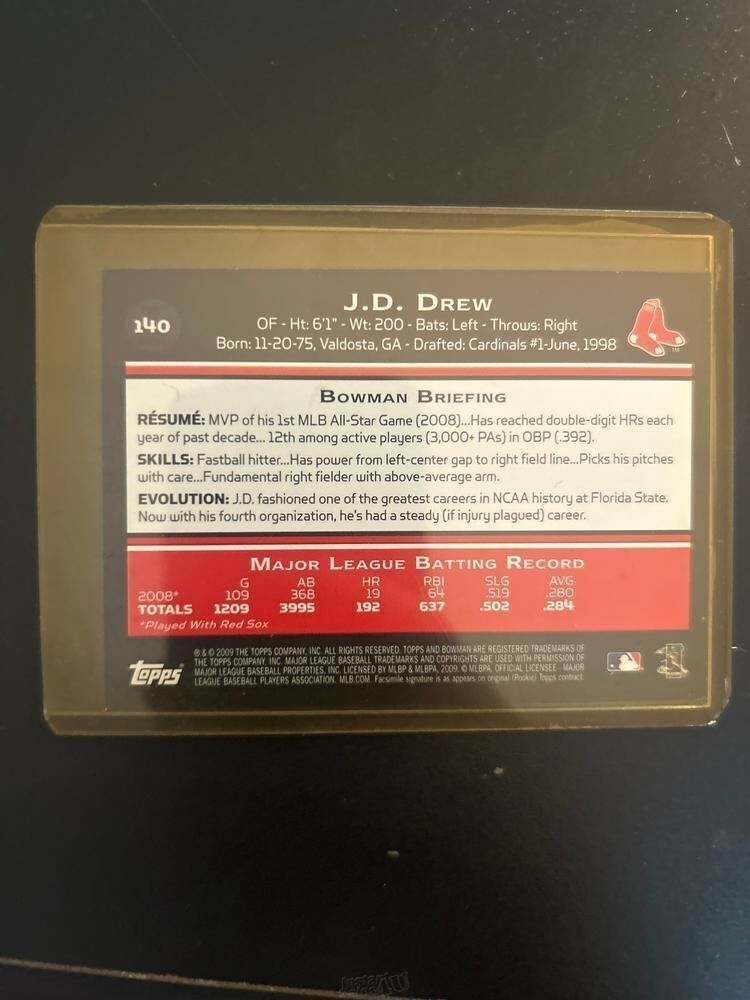 - J.D. Drew 2009 Bowman Chrome #140 Refractors Boston Red Sox Outfield