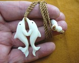 (#J-DOL-1) You are bidding on a beautifully hand carved pendant made of natural cow bovine bone as a PAIR of TWIN KISSING DOLPHINS jumping upright; measures 1-7/8" long x 1-1/4" wide; excellent carving; flat on back; wrapped cord through opening at top of dolphins, on a 28" natural braided cotton cord necklace with sliding knot white bovine bone bead closure that can be adjusted to any length smaller.