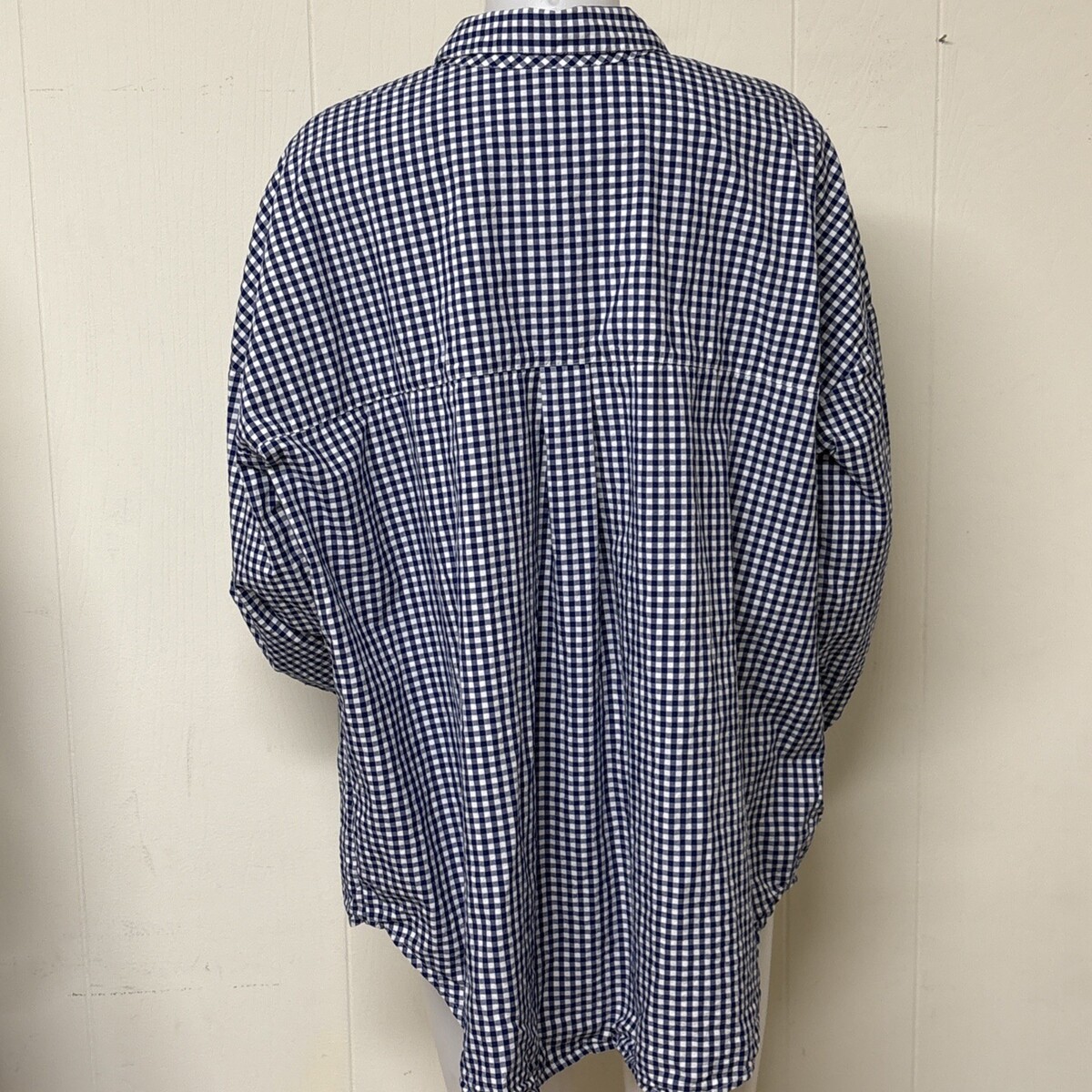 - J Jill Gingham Top Womens Plus 2X Blue Check Popover Long Sleeve Collared Shirt