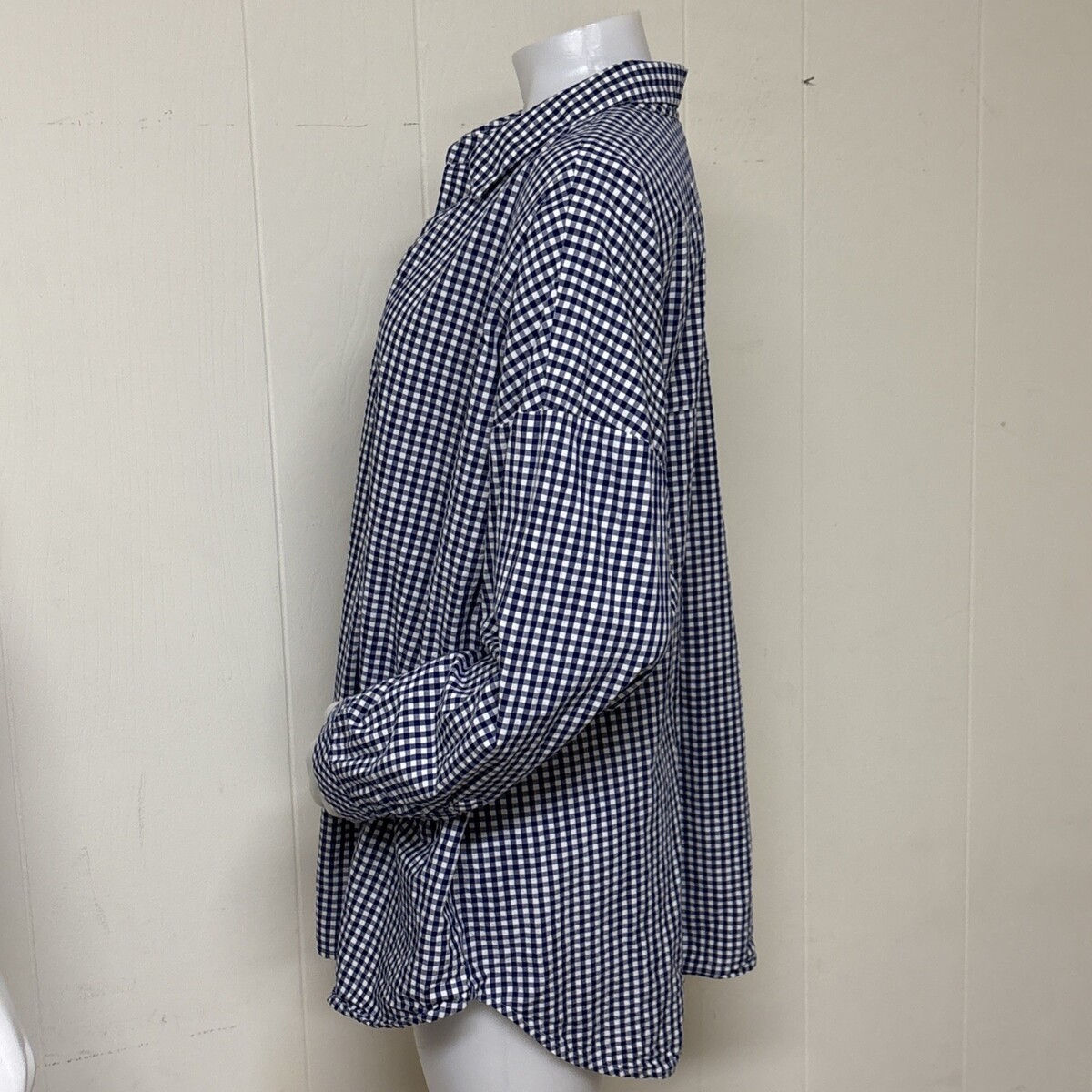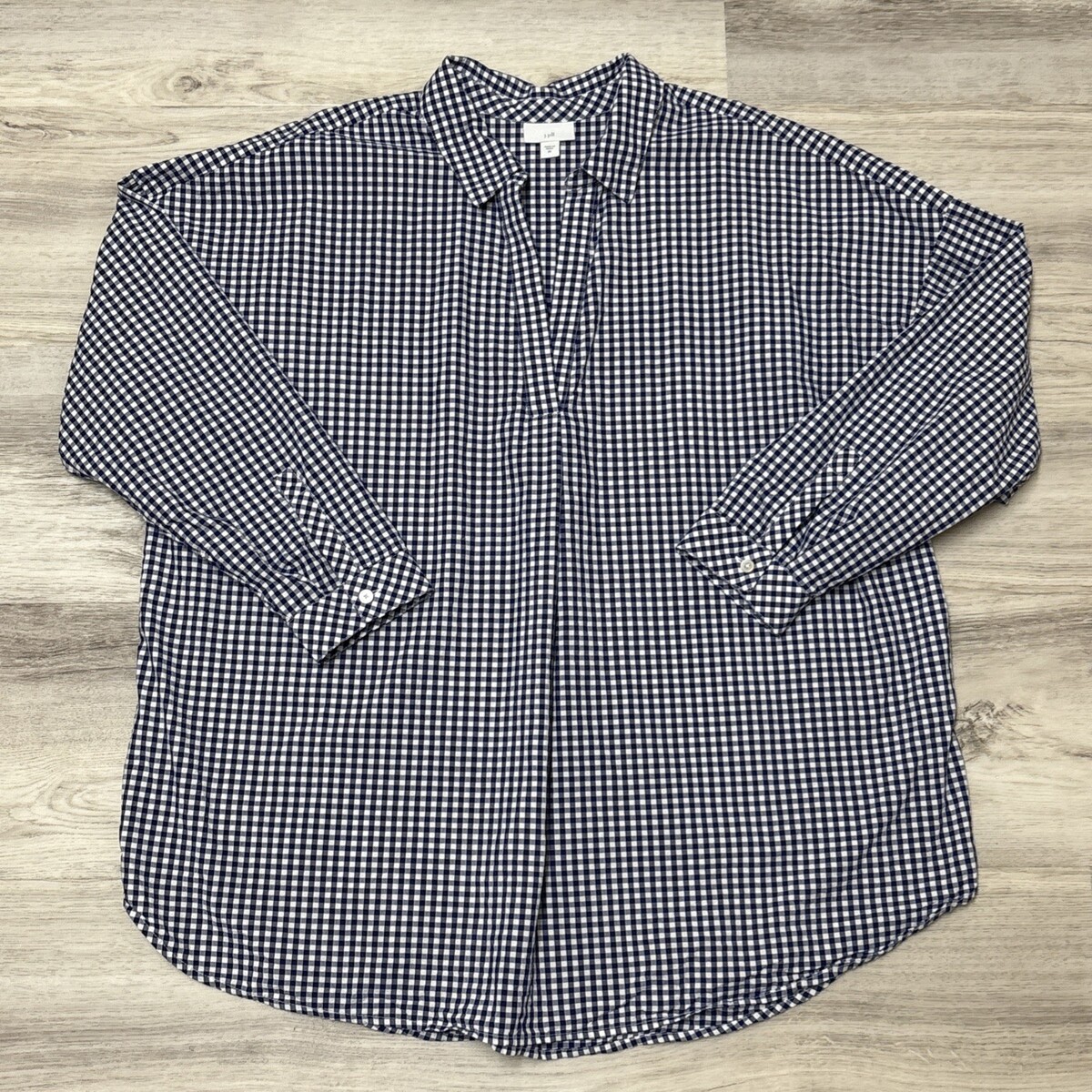 J Jill Gingham Top Womens Plus 2X Blue Check Popover Long Sleeve Collared Shirt