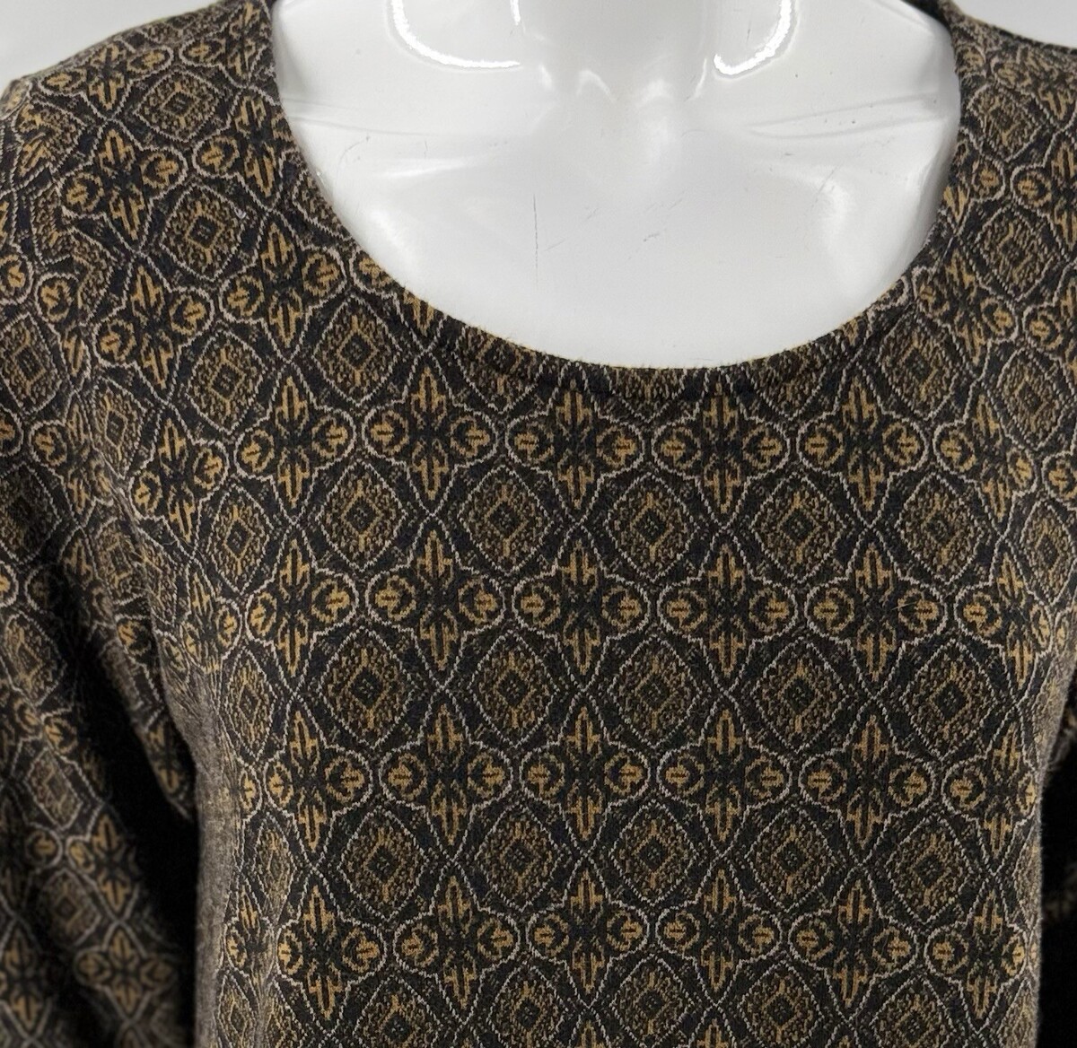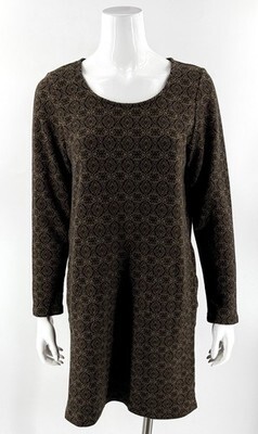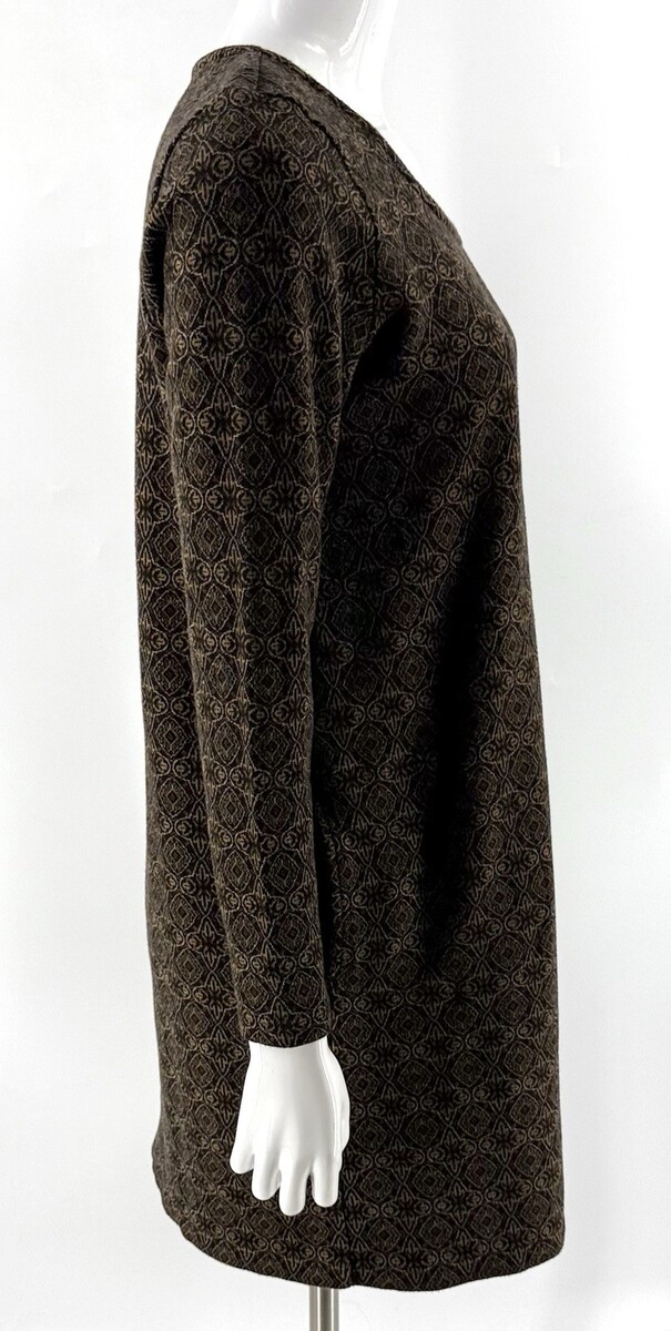 - J Jill Long Sleeve Shift Dress Size Medium Black Brown Patterned Pockets Womens