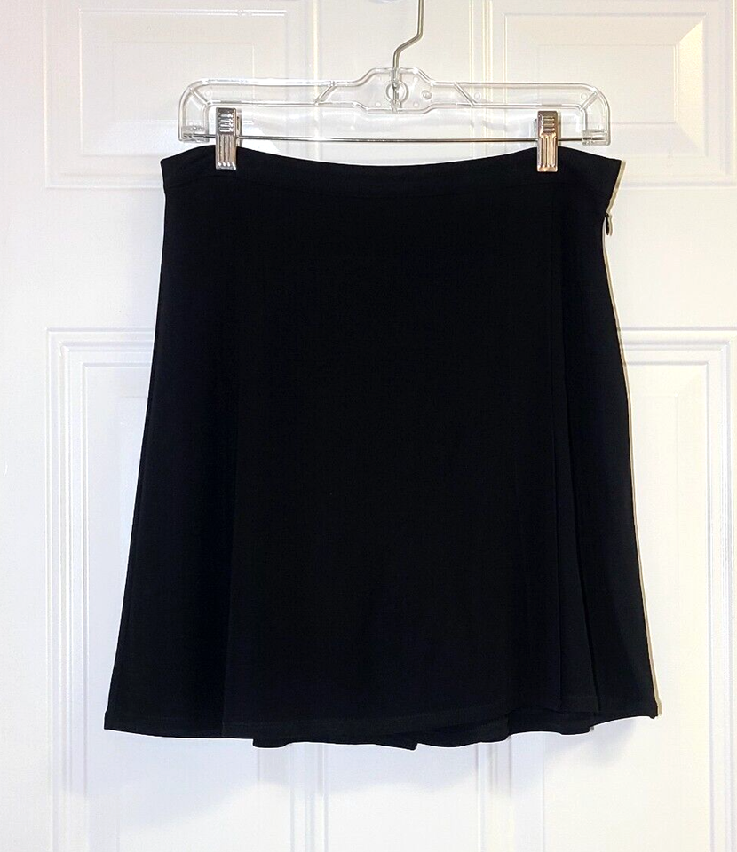 J Jill Skort Skirt Black Faux Wrap Slinky Stretch Petite Size 8P Side Zip