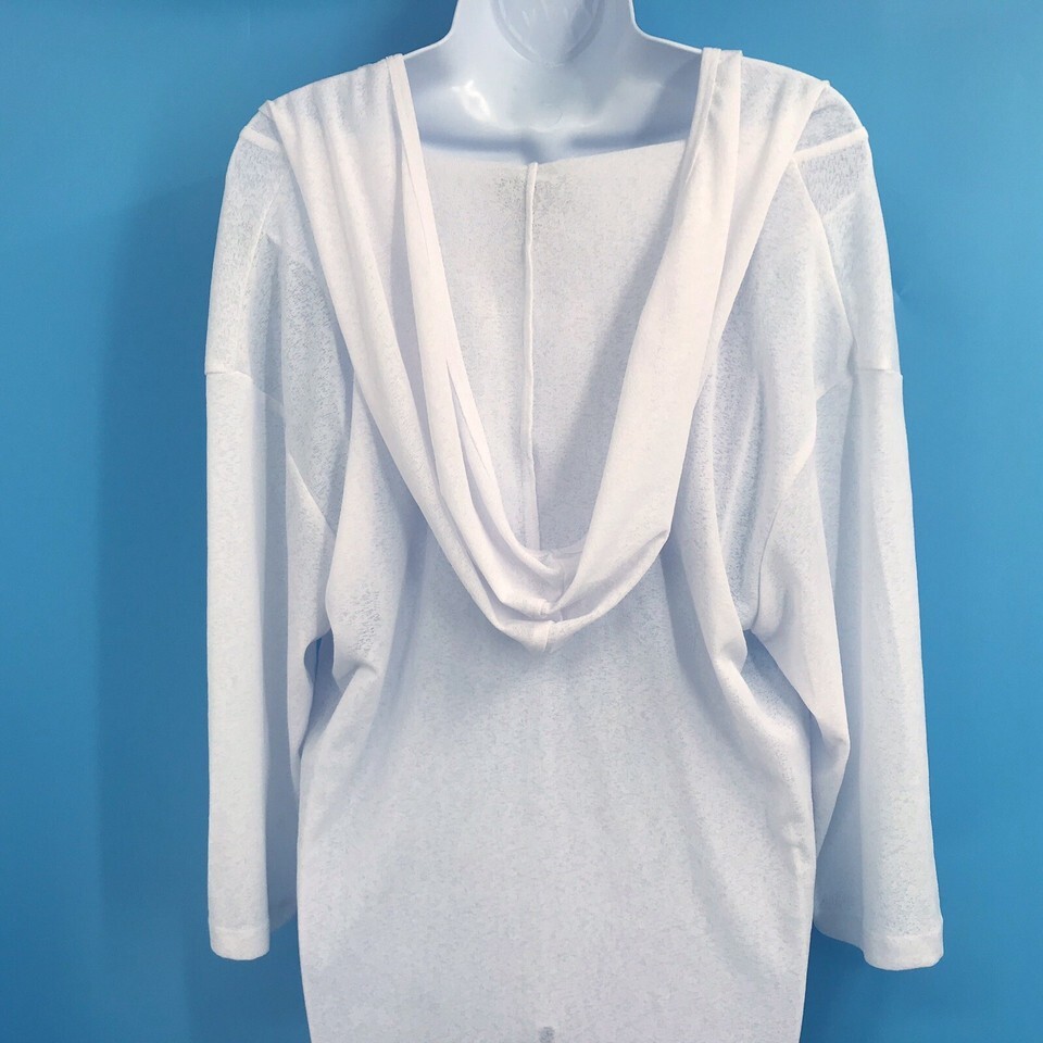 J.Valdi Womens White Swimsuit Tunic Cover Up Hooded Beach Bikini Dress Size S