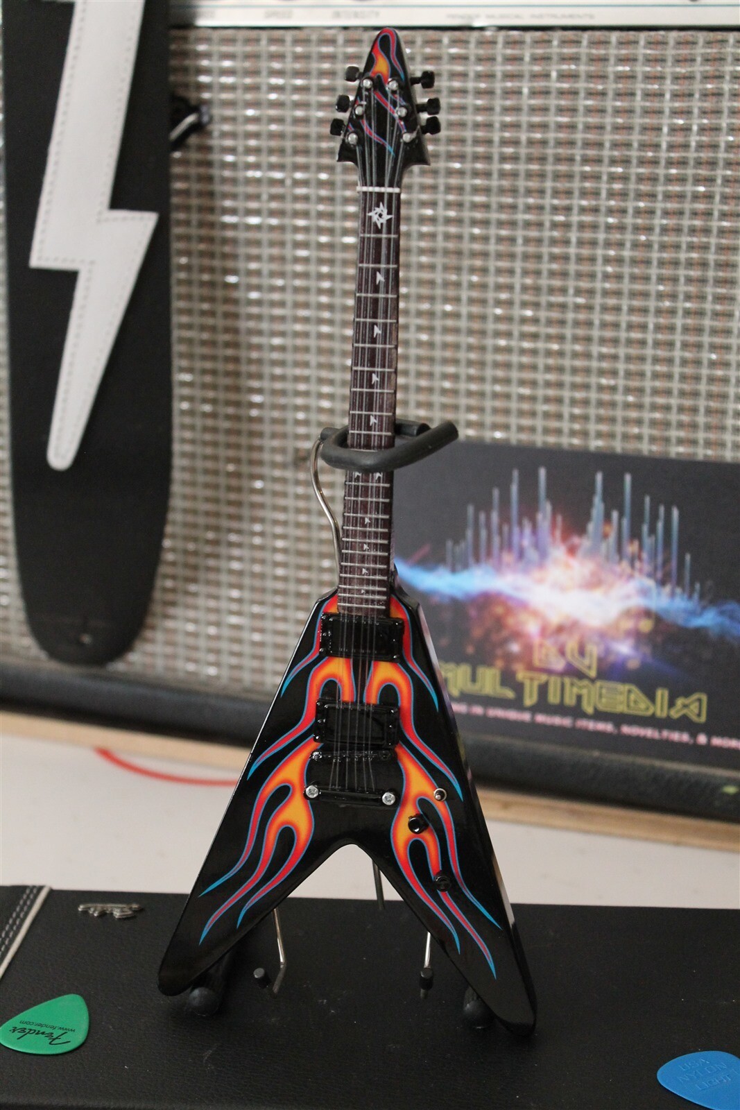 - JAMES HETFIELD - Hot Rod Flames Flying V 1:4 Scale Replica Guitar ~Axe Heaven