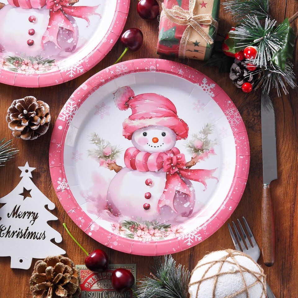 - JASSEWRLY 40Pcs Christmas Snowman Disposable Paper Plates Holiday Party
