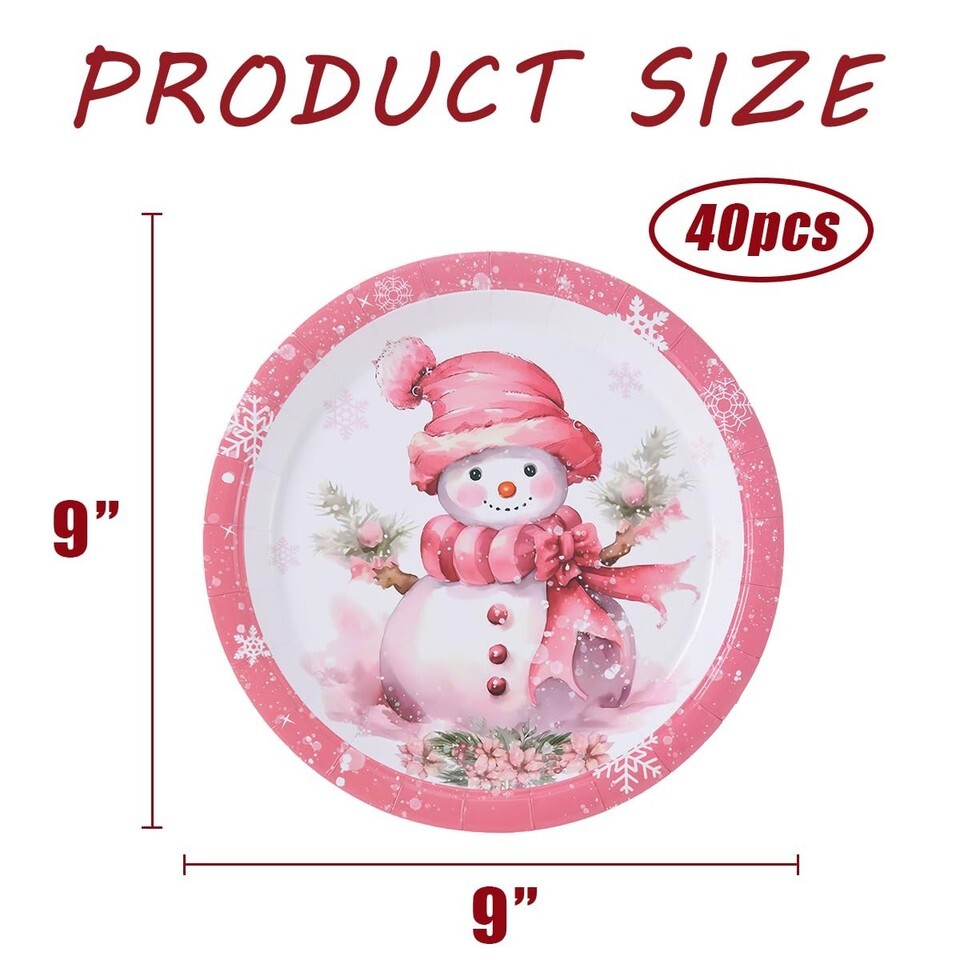 JASSEWRLY 40Pcs Christmas Snowman Disposable Paper Plates Holiday Party