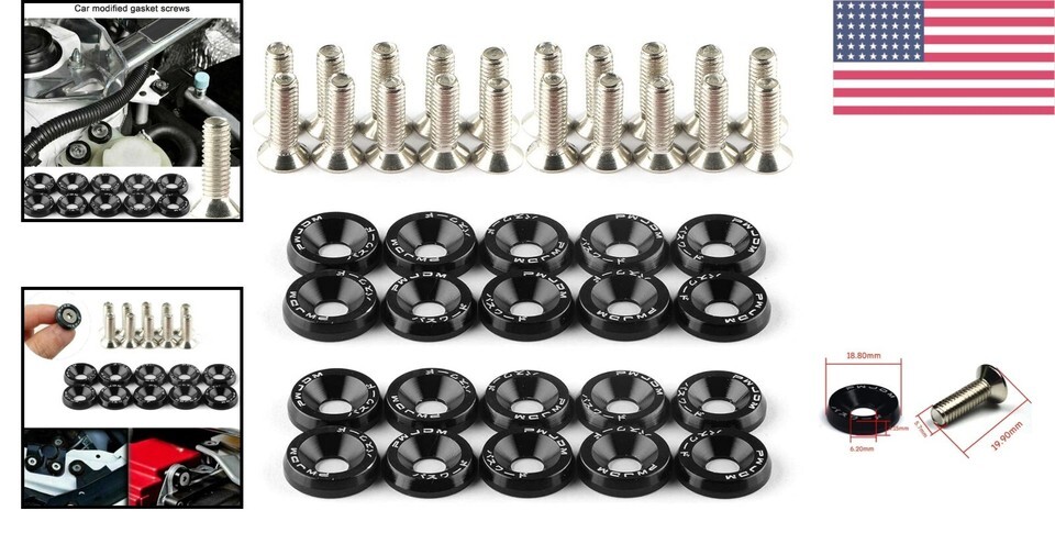 - JDM 20Pcs M6 Bumper Fender Washers with Stainless Steel Bolts - Black