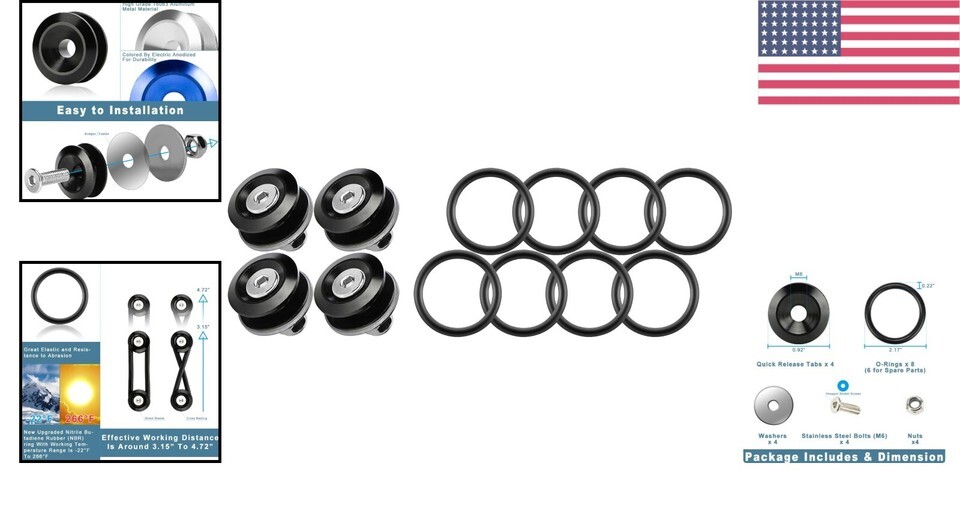 - JDM 4-Piece Quick Release Bumper Fasteners Set - Black Anodized, Lightweight