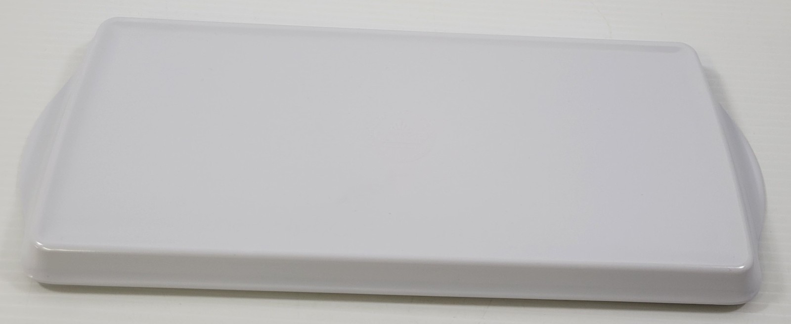 Plastic tray - dishwasher safe but NOT safe for microwave