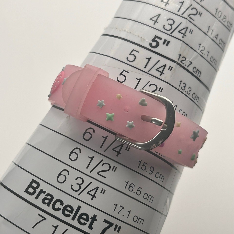This JNEW kids' digital watch is perfect for the little unicorn lover in your life! The watch features a pink and silver design with a fun unicorn theme. It has a 34mm case and is in working condition, new battery installed. This watch is sure to bring a smile to any child's face. It's the perfect accessory for everyday wear and will help them learn to tell time in a fun and engaging way. Don't miss out on this adorable and functional timepiece!