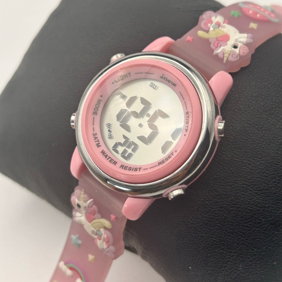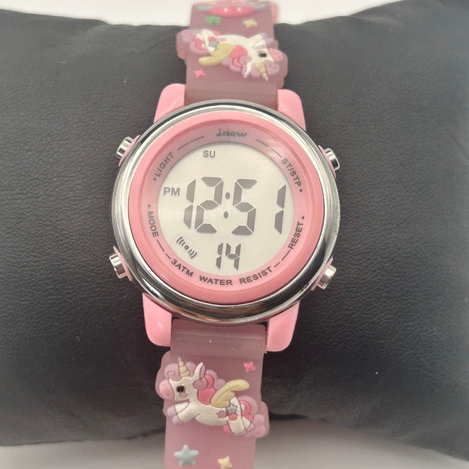 - JNEW Pink Silver Unicorn Kids Fashion Digital Watch 34mm Working