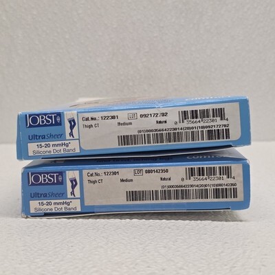 2 Pack of JOBST UltraSheer Thigh High CT 15-20mmHg Stockings Silicone Dot Band Medium Natural. Images show actual set that will ship.