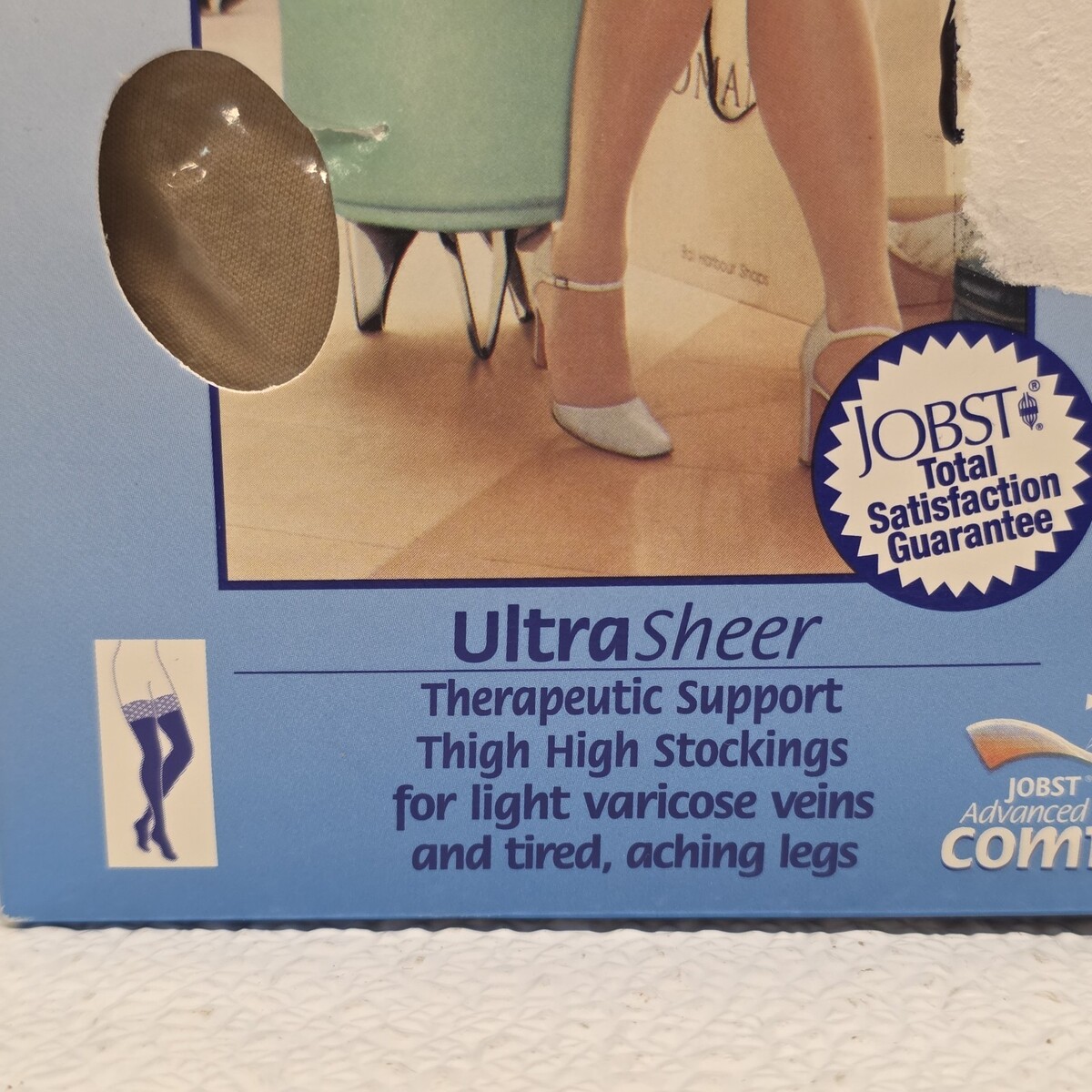 - JOBST UltraSheer Thigh High CT 15-20mmHg Stockings Sil. Dot Band Medium Natural