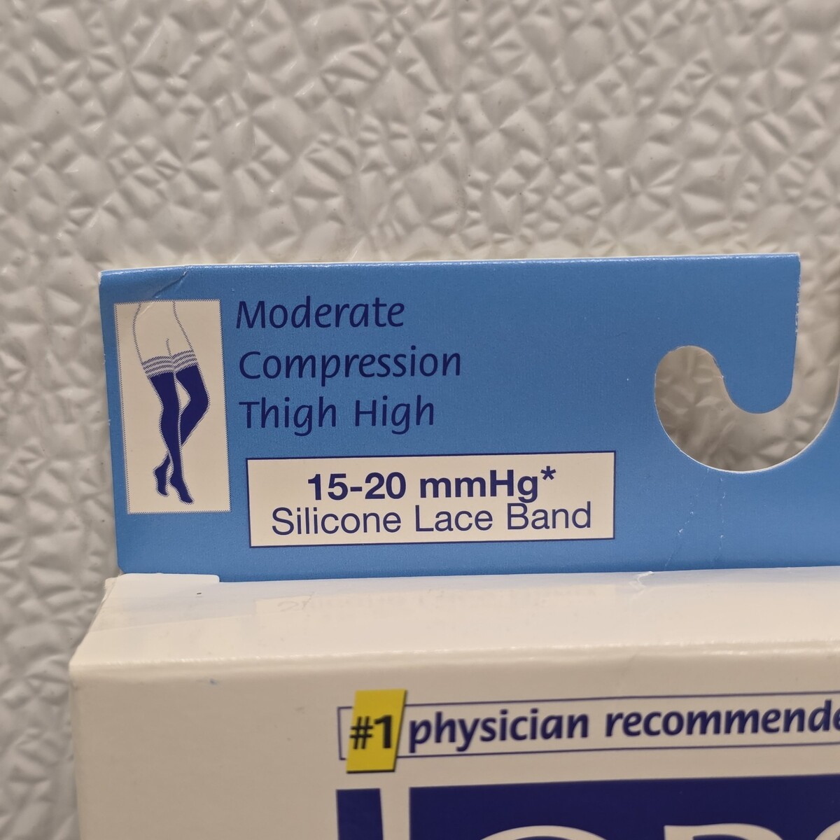 - JOBST UltraSheer Thigh High CT 15-20mmHg Stockings Sil. Lace Band Medium Natural