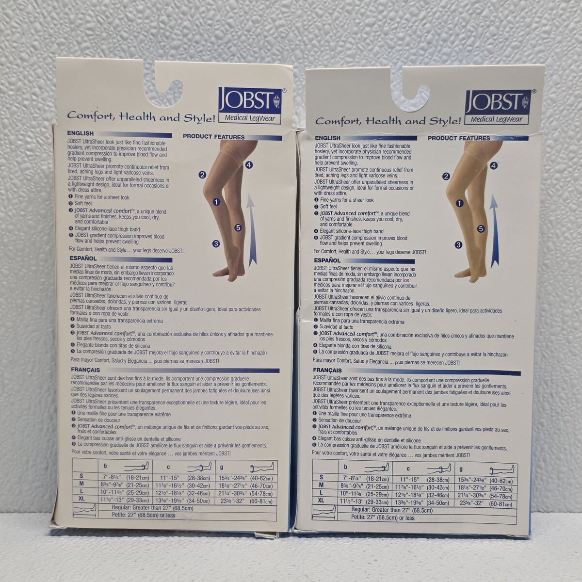 2 JOBST UltraSheer Thigh High CT 15-20mmHg Stockings Sil. Lace Band Medium Natural. Images show actual set that will ship.