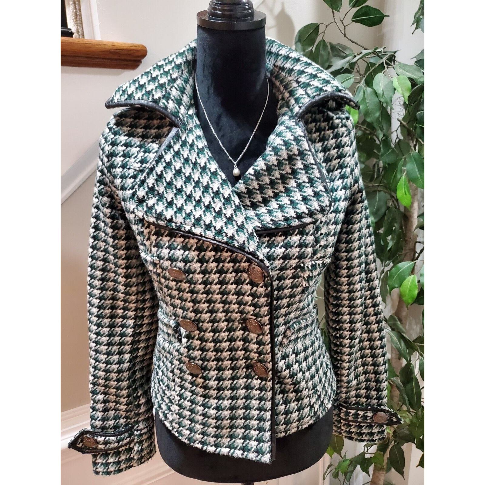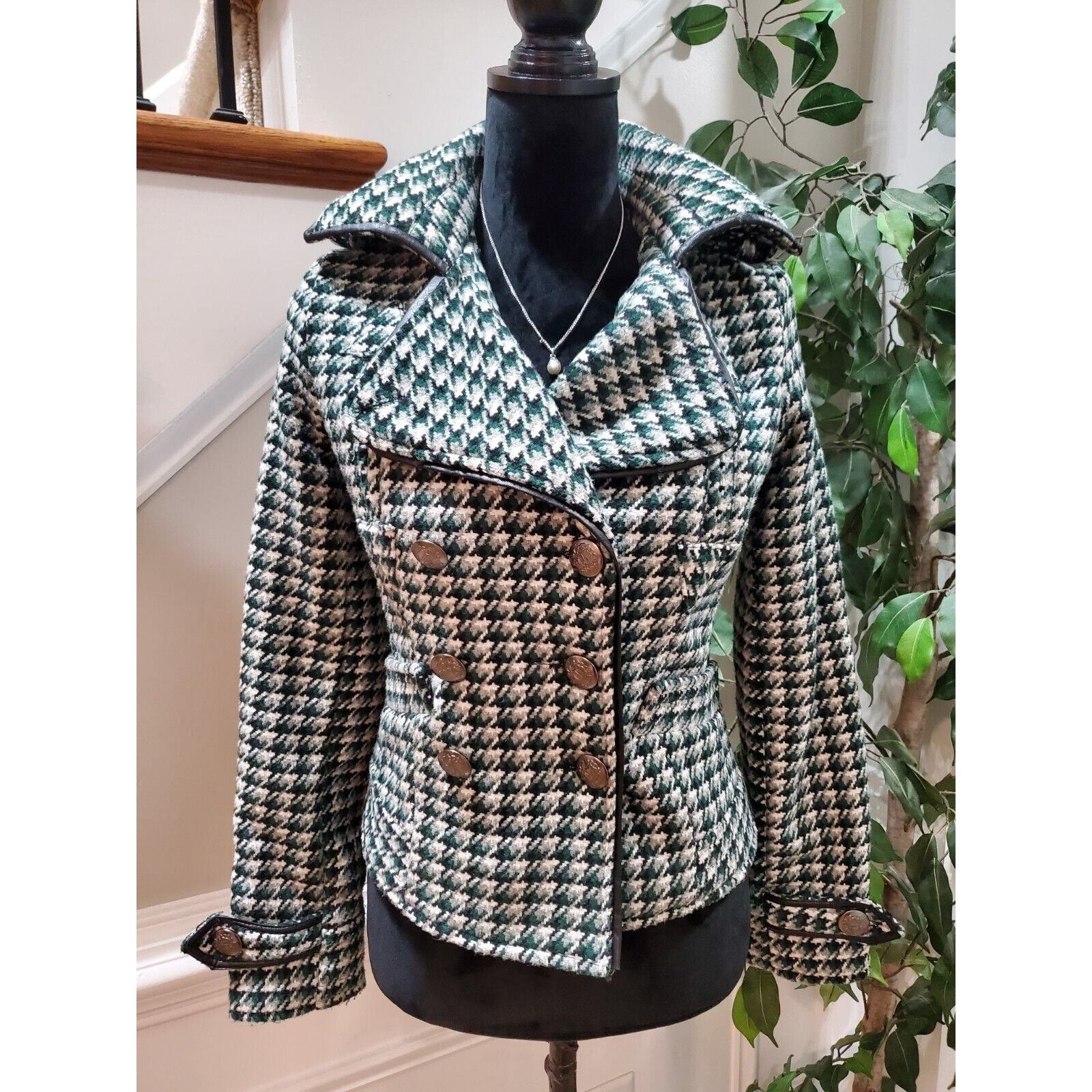 JOUJOU Women's White Green Polyester Double Breasted Long Sleeve Coat Size XS.