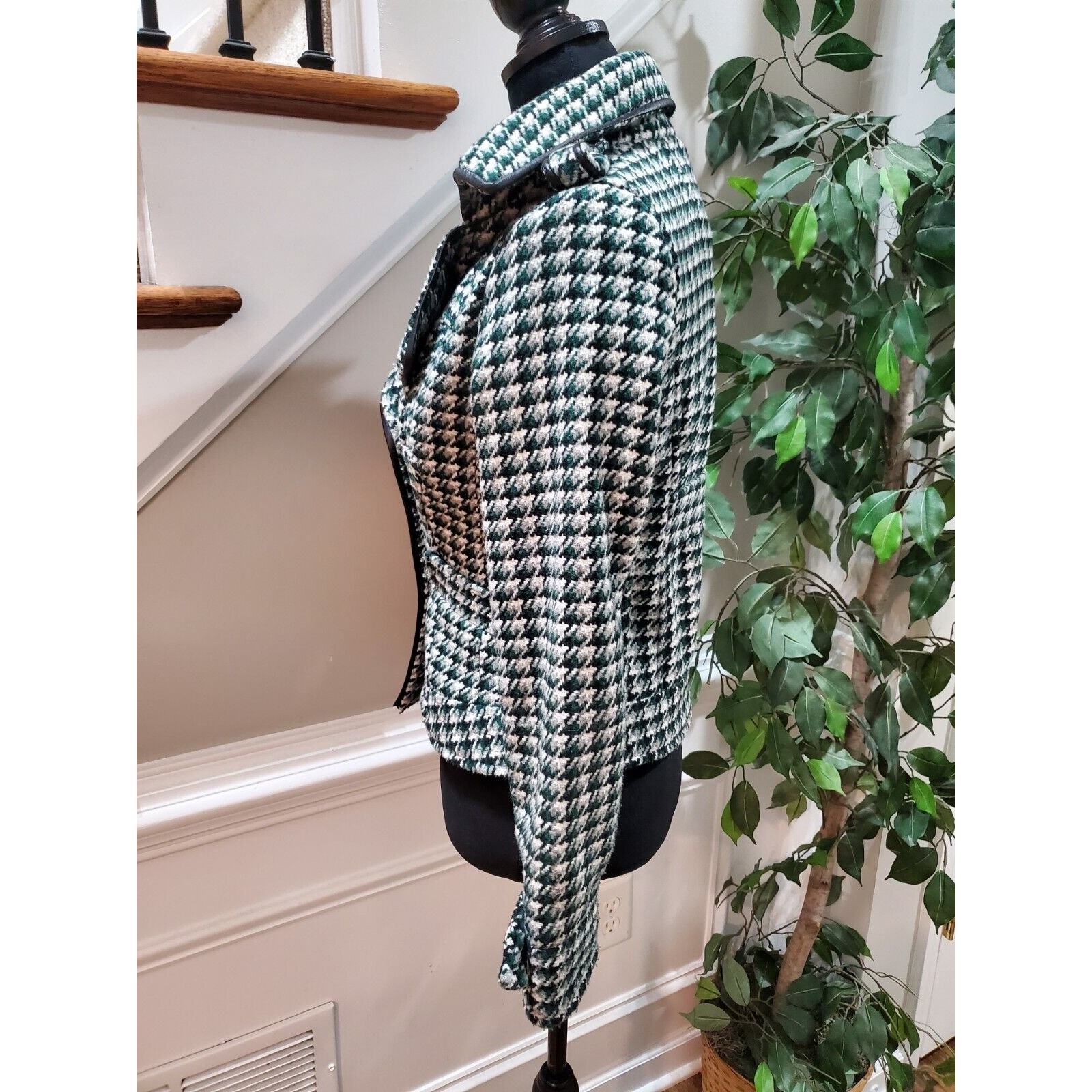 JOUJOU Women's White & Green Polyester Double Breasted Long Sleeve Coat Size XS