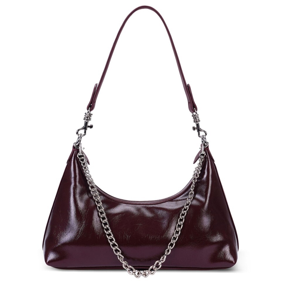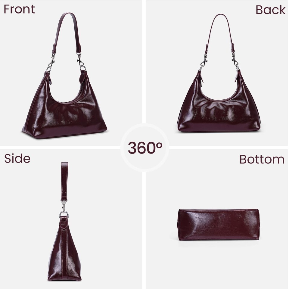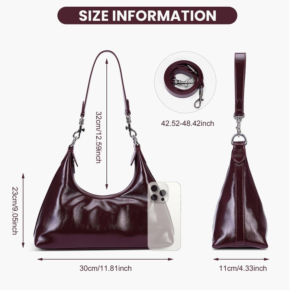 - JQWSVE Crescent Shoulder Bag Women Glossy Leather Crossbody Black