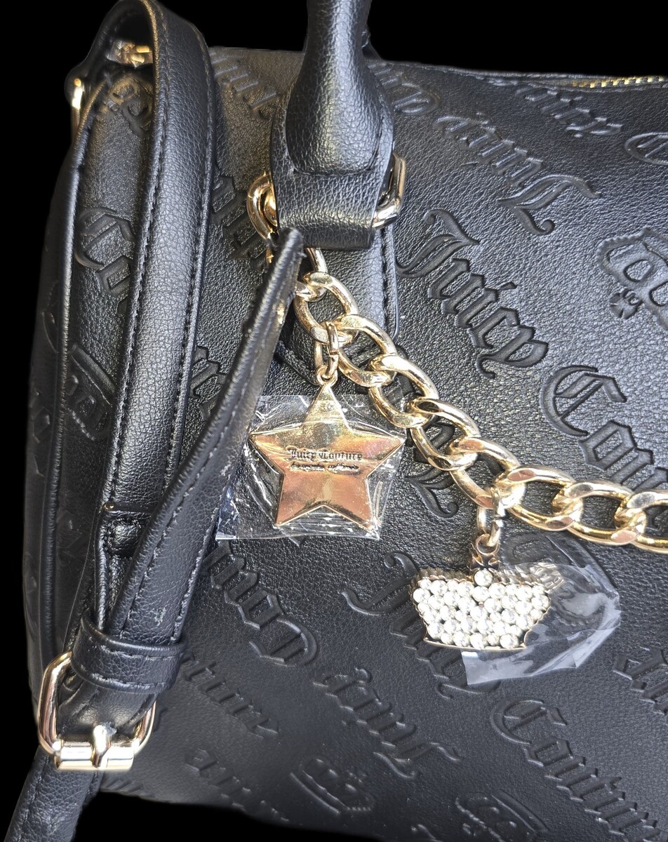 - JUICY COUTURE Crossbody Bag Black 'Not Your Babe' Satchel w Charms *New*